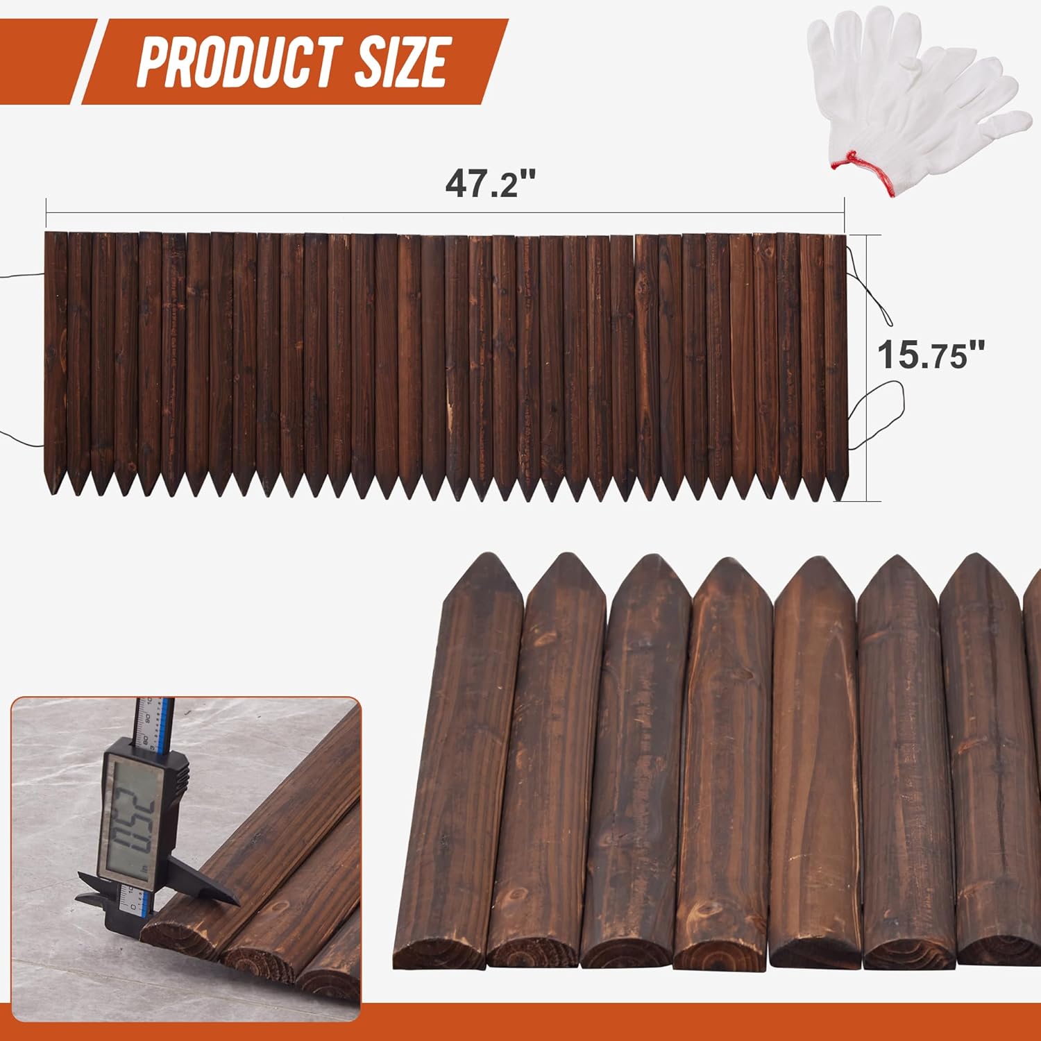 Garden Edging Border Wood Fence for Yard Patio Path Decorative Landscape Edging Flower Bed, 15.7" H-3pcs
