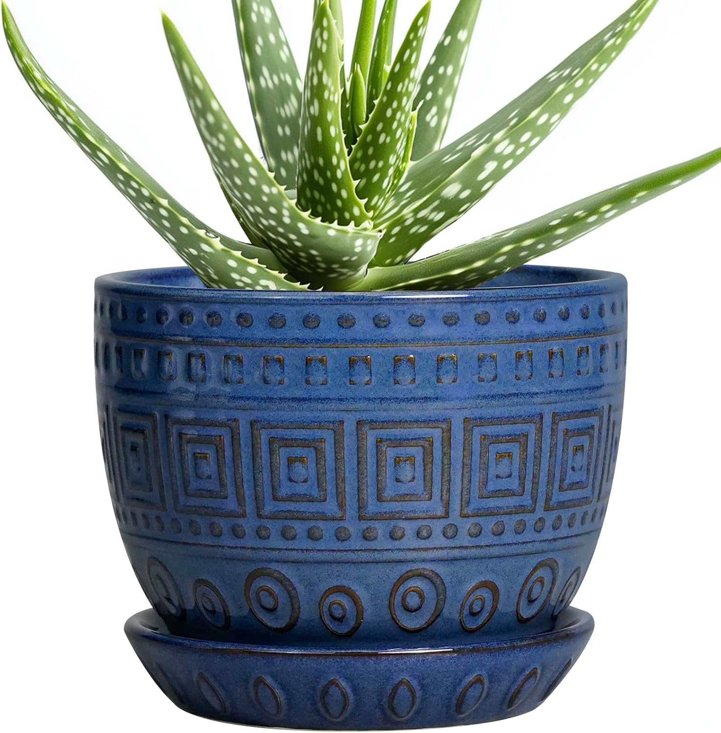 G EPGardening Plant Pots Indoor 5 Inch - Ceramic Pot for Plants with Drainage Hole and Saucer Round Planter Outdoor Modern Flower Pot Home Office Decor Blue
