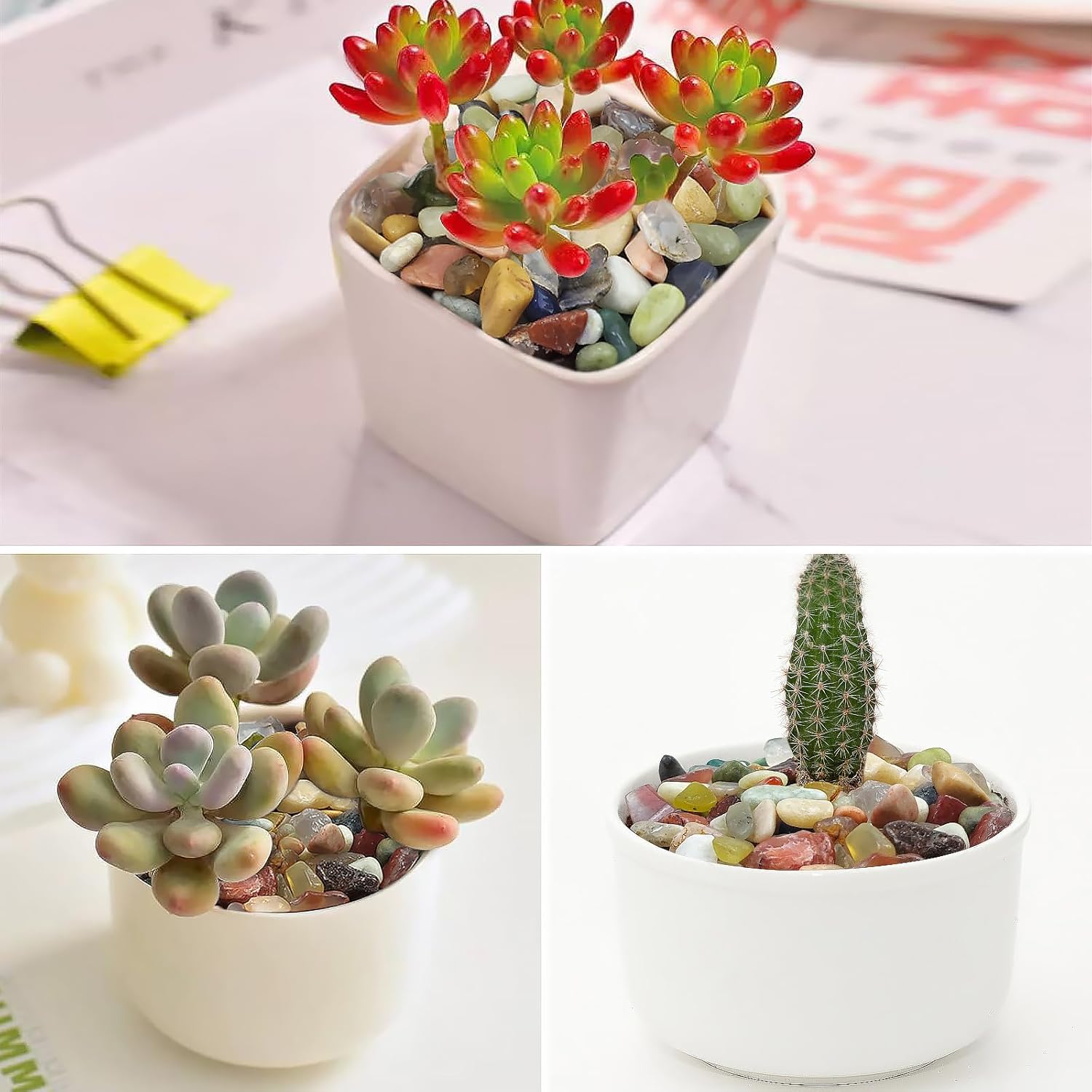 - 【Suitable for Succulent and other Plants】:Natural colorful pebbles are very suitable for succulents, cacti and other plants. Laying them on the surface helps prevent nutrient and moisture loss, as well as prevent soil overflow and damage to the beauty of potted plants. Laying it at the bottom can clear the water system of plant roots and prevent them from rotting