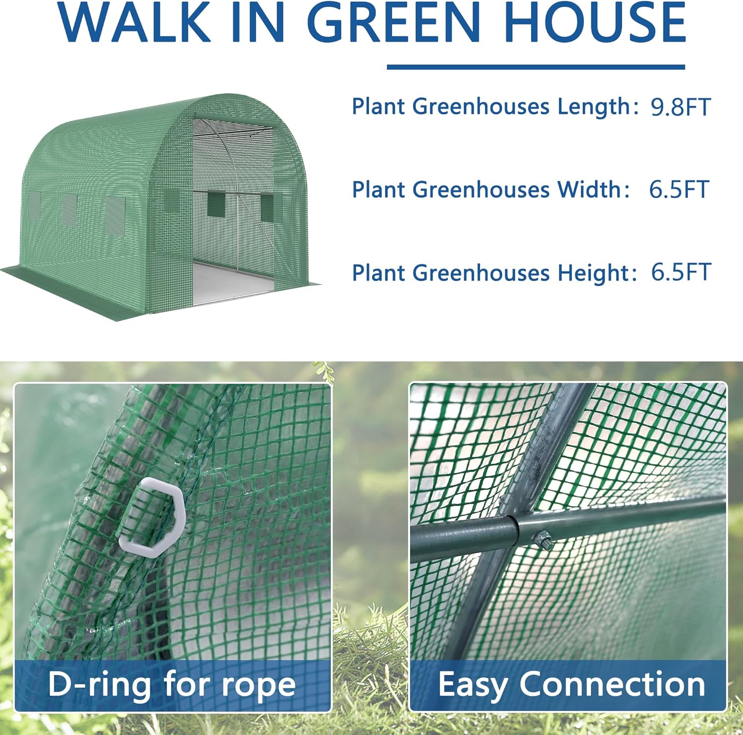 - 【Large Green Houses】Dimensions: 118''L*78''W*78''H, our walk-in tunnel greenhouse is big enough for most garden plants: vegetables, fruits, flowers, herbs, succulents, and tropical saplings. Note: Please remove the cover in case of heavy snow, strong wind, and heavy rain.