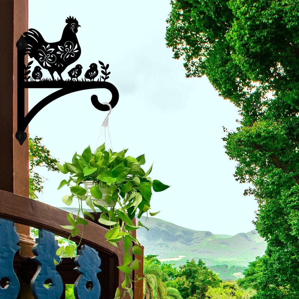 peacoblue Iron Plant Hangers Hooks for Outdoor Indoor Hanging Plants Flower Fern Pots Lantern Bird Feeder 12"x15" Weather Resistant Metal Wall Holder for Porch Garden Farmhouse(Hen and Chicks)