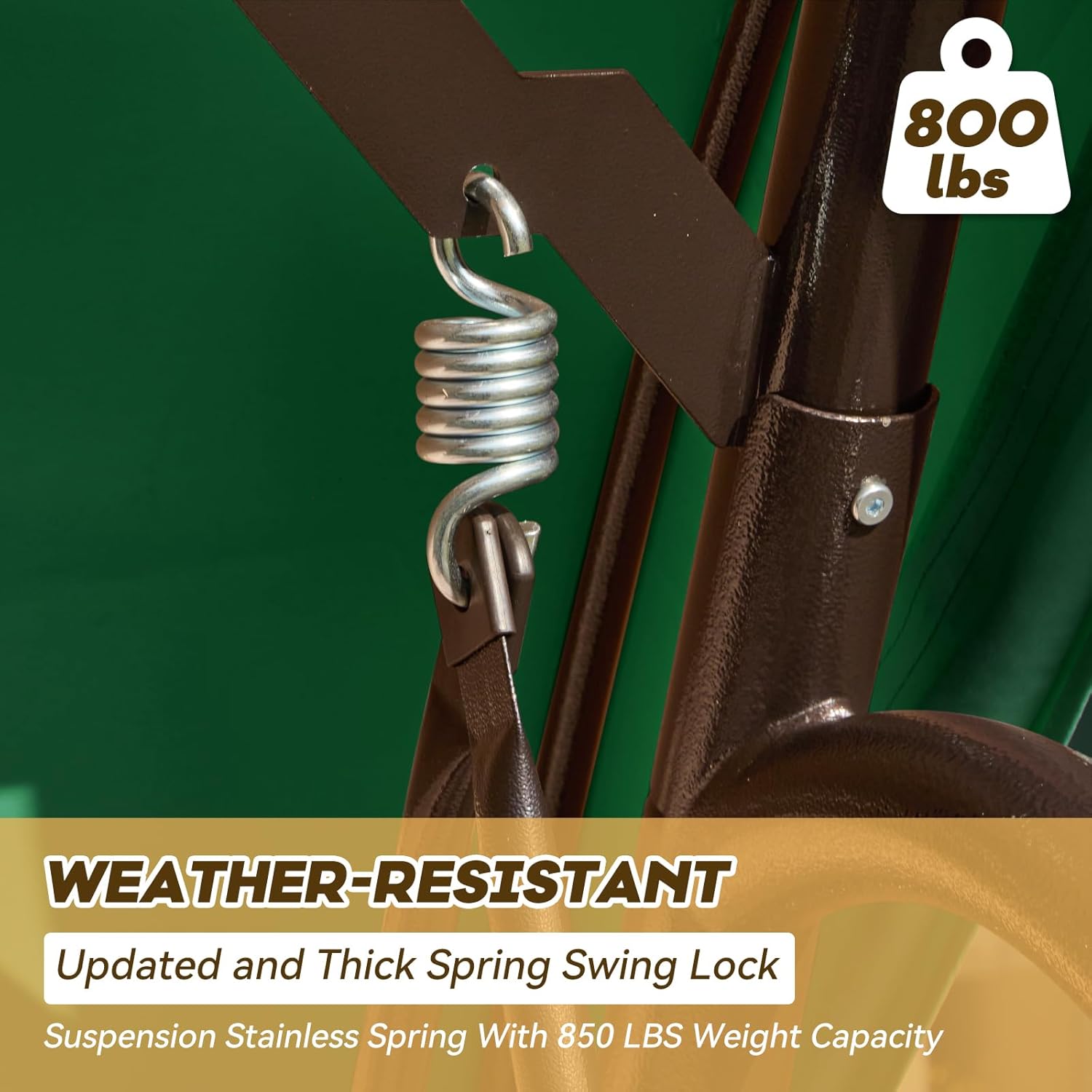 - ăSturdy and Safe Constructionă: The maximum weight capacity of porch swing is 800 pounds, our glider swing is designed for 3 adults to sit comfortably. The swing outdoor has a reliable buckle on backrest, ensuring stability and preventing any unwanted swinging. The double protection of 3 seat garden swing is designed for preventing accidental tipping.