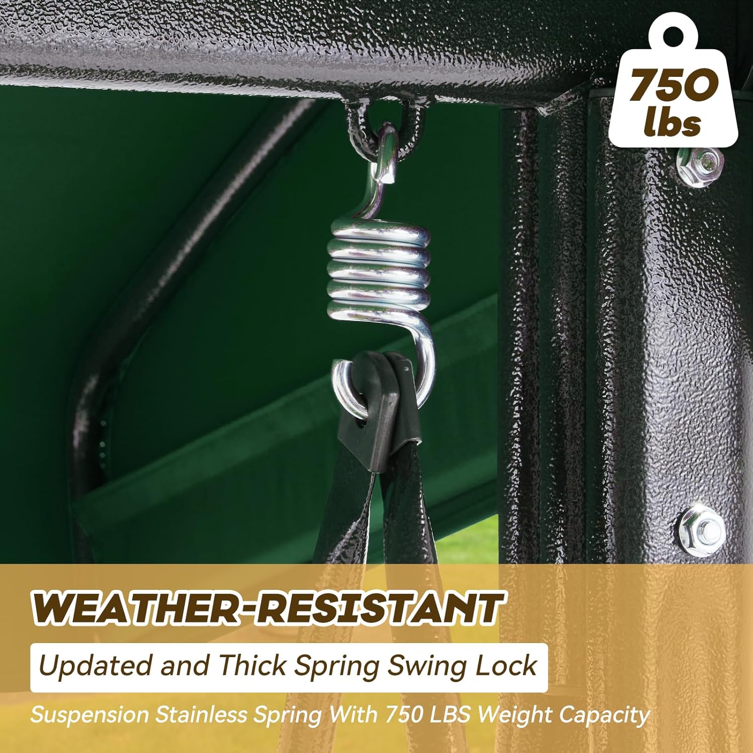 - ăSturdy and Safe Constructionă: The maximum weight capacity of porch swing is 750 pounds, our glider swing is designed for 3 adults to sit comfortably. The swing outdoor has a reliable buckle on backrest, ensuring stability and preventing any unwanted swinging. The double protection of 3 seat garden swing is designed for preventing accidental tipping.