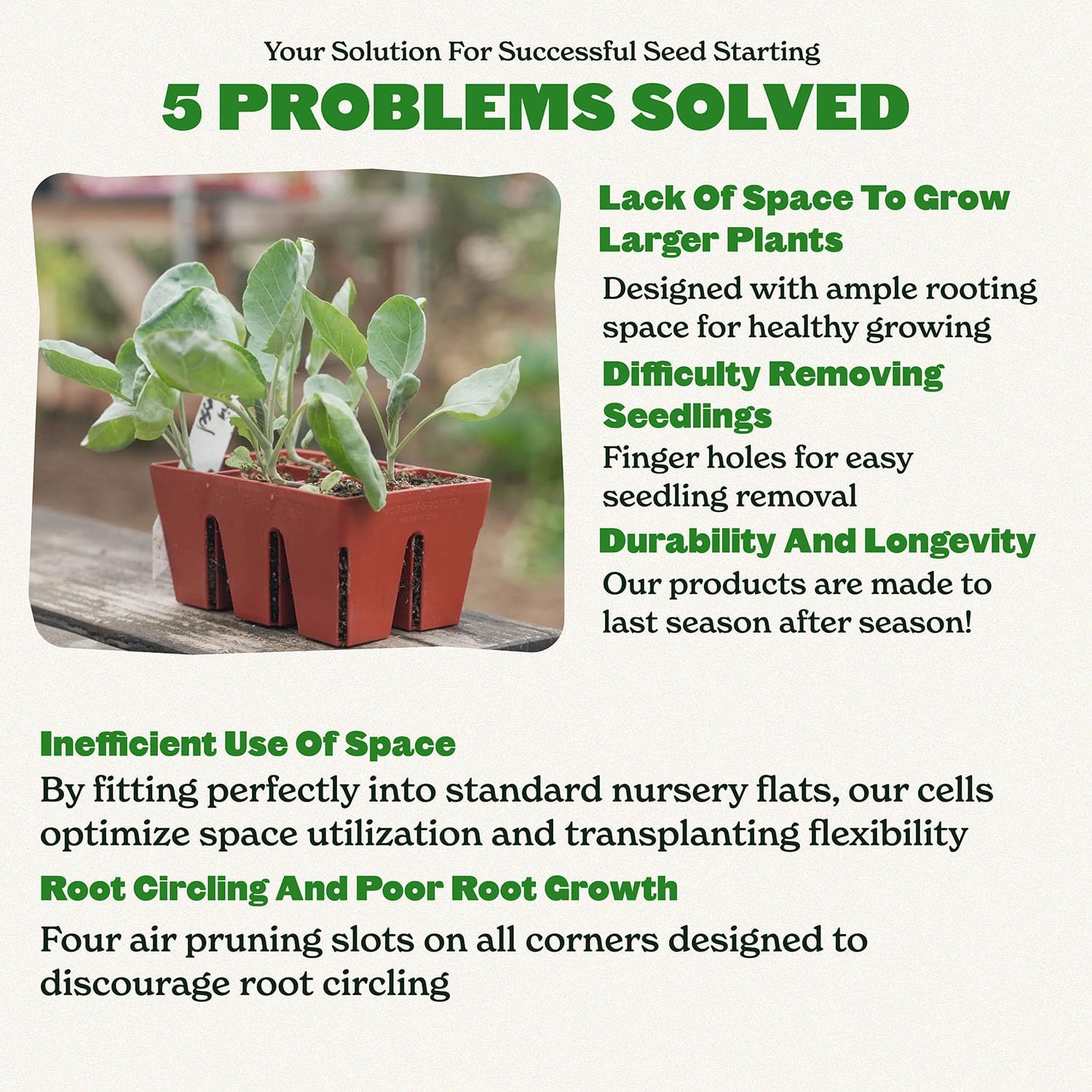 - Simple Design, Big Results: Epic grow trays for seedlings are the gardener's dream come true. They're strong, promote healthy growth, make transplanting a breeze, and keep your seedlings organized. Get ready for a thriving garden season – all thanks to the power of Epic!