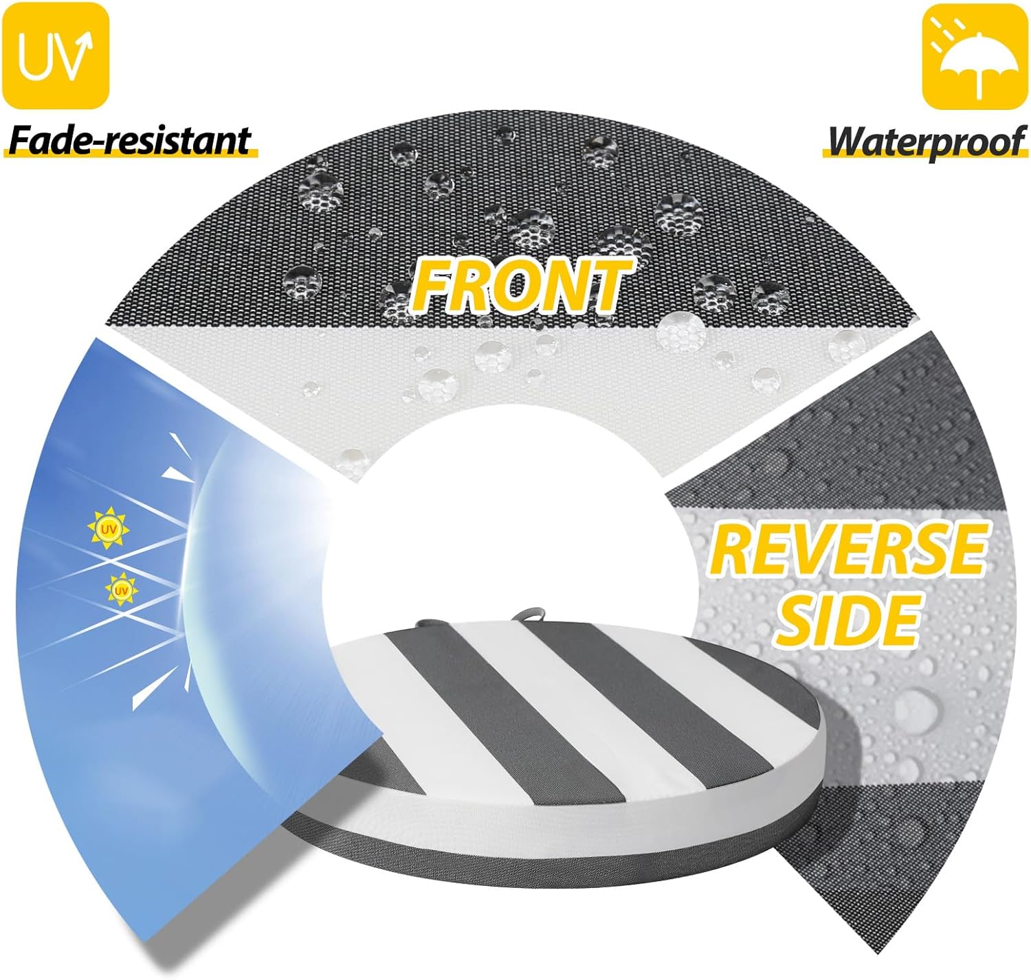 - Waterproof & Removable Cover: Durable, breathable polyester with a waterproof coating, UV protection, and fade resistance for lasting outdoor use. The zippered cover allows easy cleaning and replacement, with hidden zippers for a seamless look