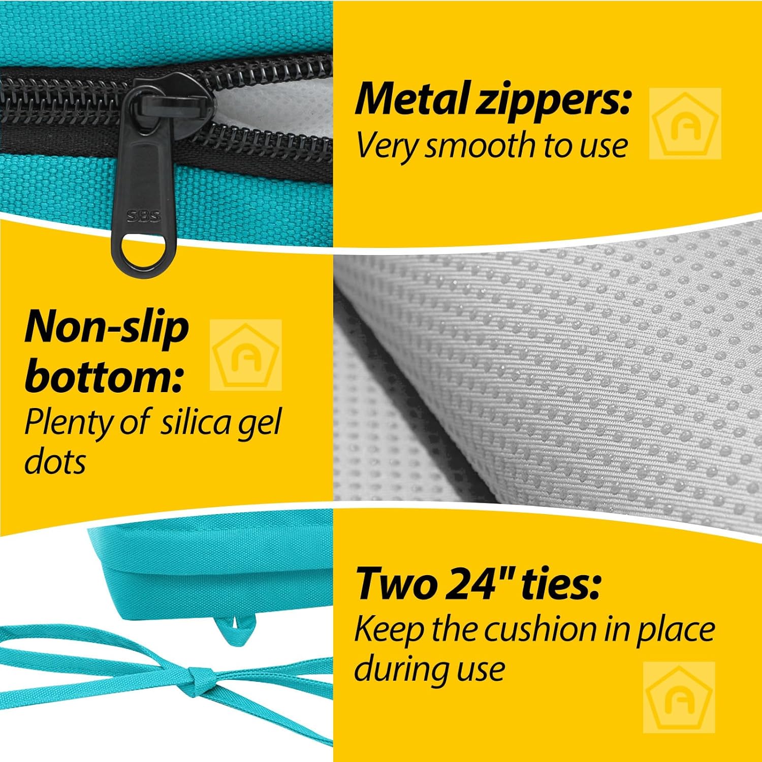 - Non-slip Ties and Piped Edge: The two non-slip ties can be fastened to your furniture to keep the outdoor cushion in place