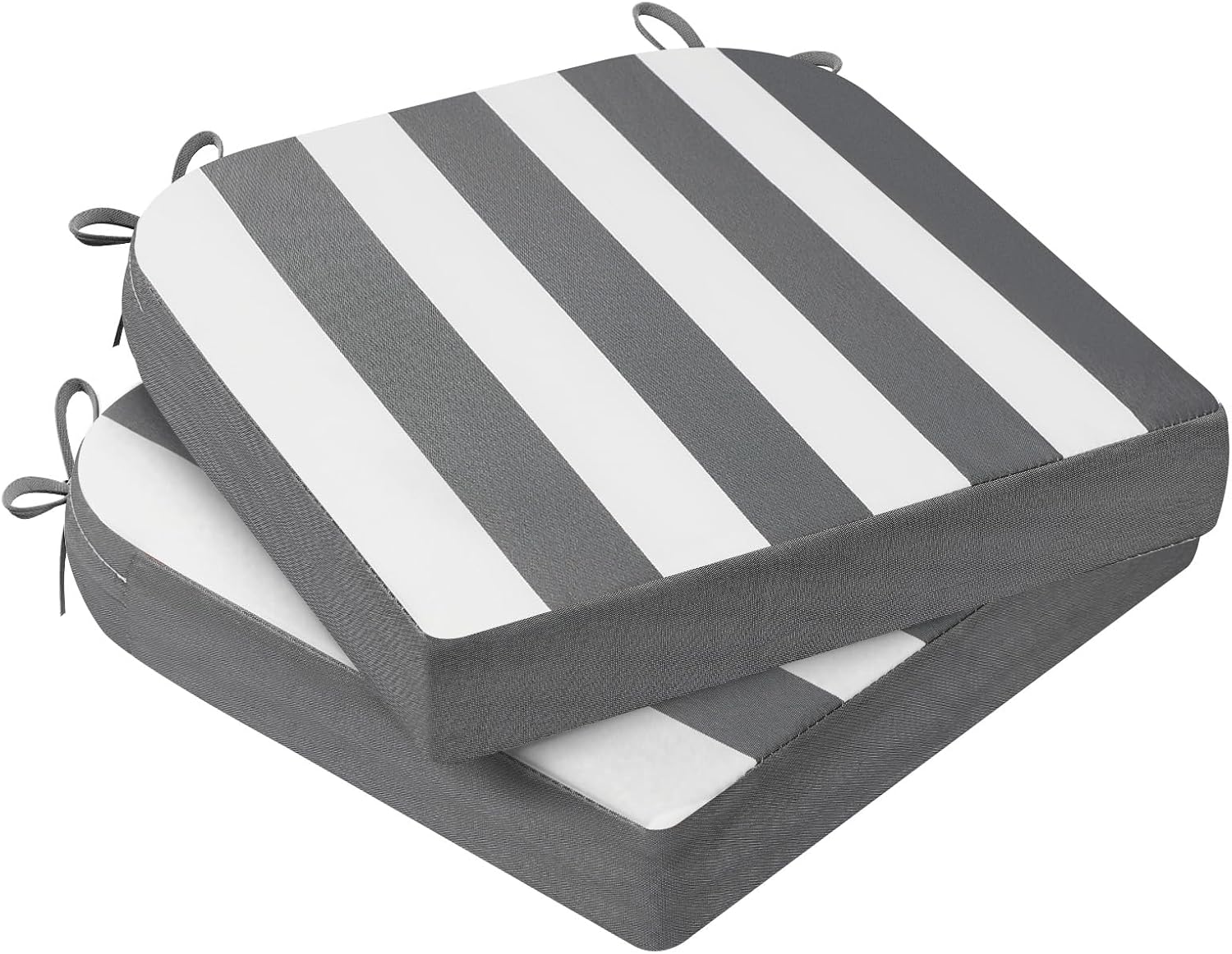 AAAAAcessories Outdoor Seat Cushions for Chairs, Waterproof, Fade-Resistant Patio Furniture Replacement Cushions, 17" x 16" x 2", Set of 2, Gray Cabana Stripe