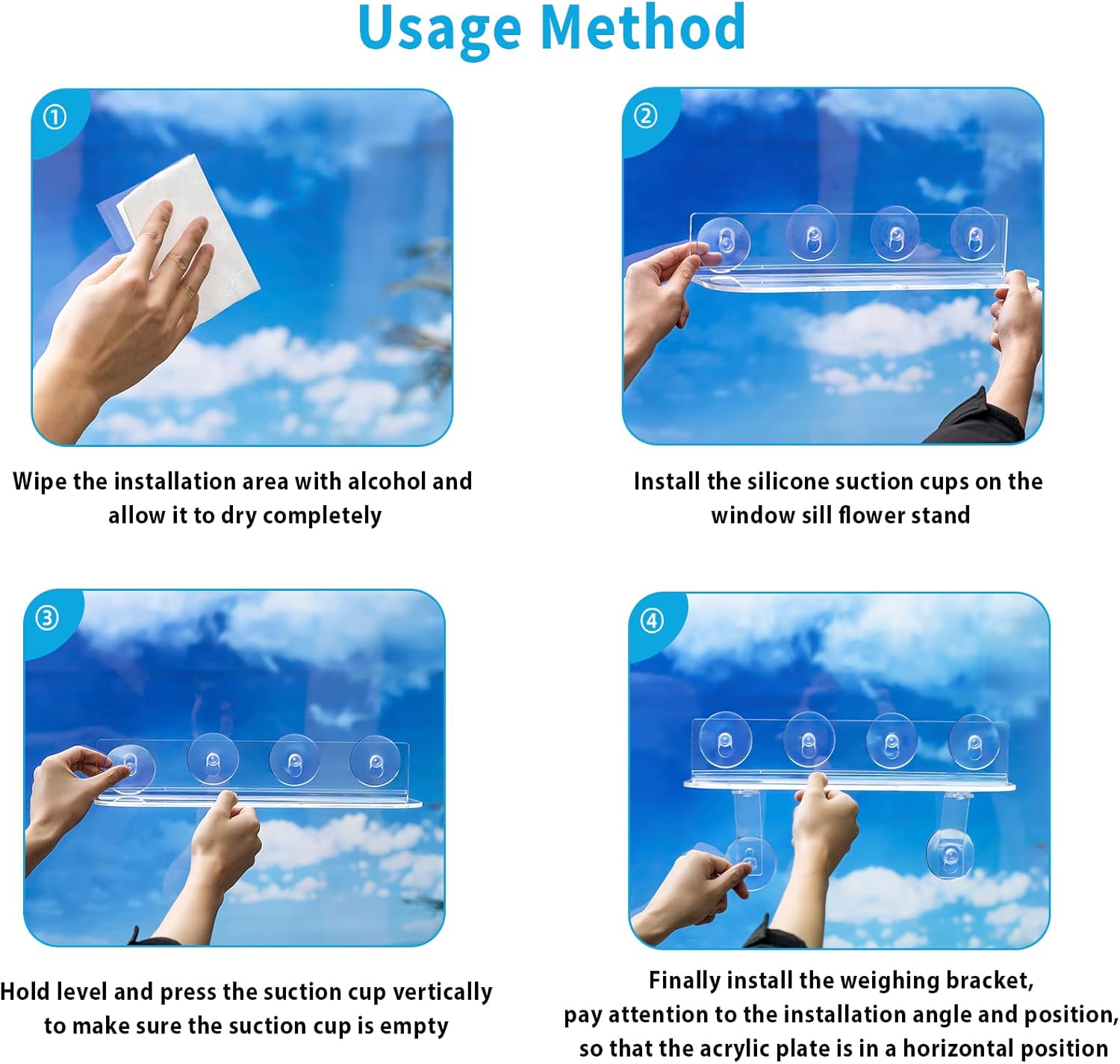 - SET DESIGN: You will receive a window box plant stand with a 12 * 5 inch extra wide countertop. There are also 8 suction cups (including 1 spare) and 2 weight-bearing brackets. The protective film on the acrylic plant stand can be removed to reveal a brand new stand. You can create your own garden on your window as you like