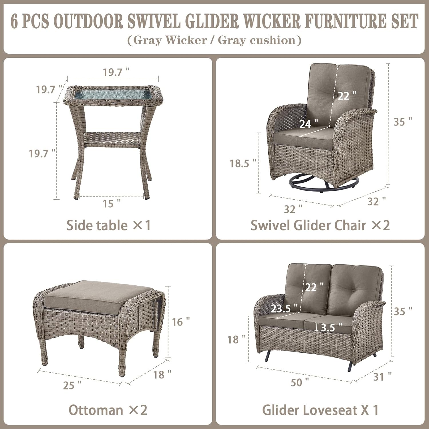 - Size : 6 PCS - Swivel Glider & Glider Loveseat