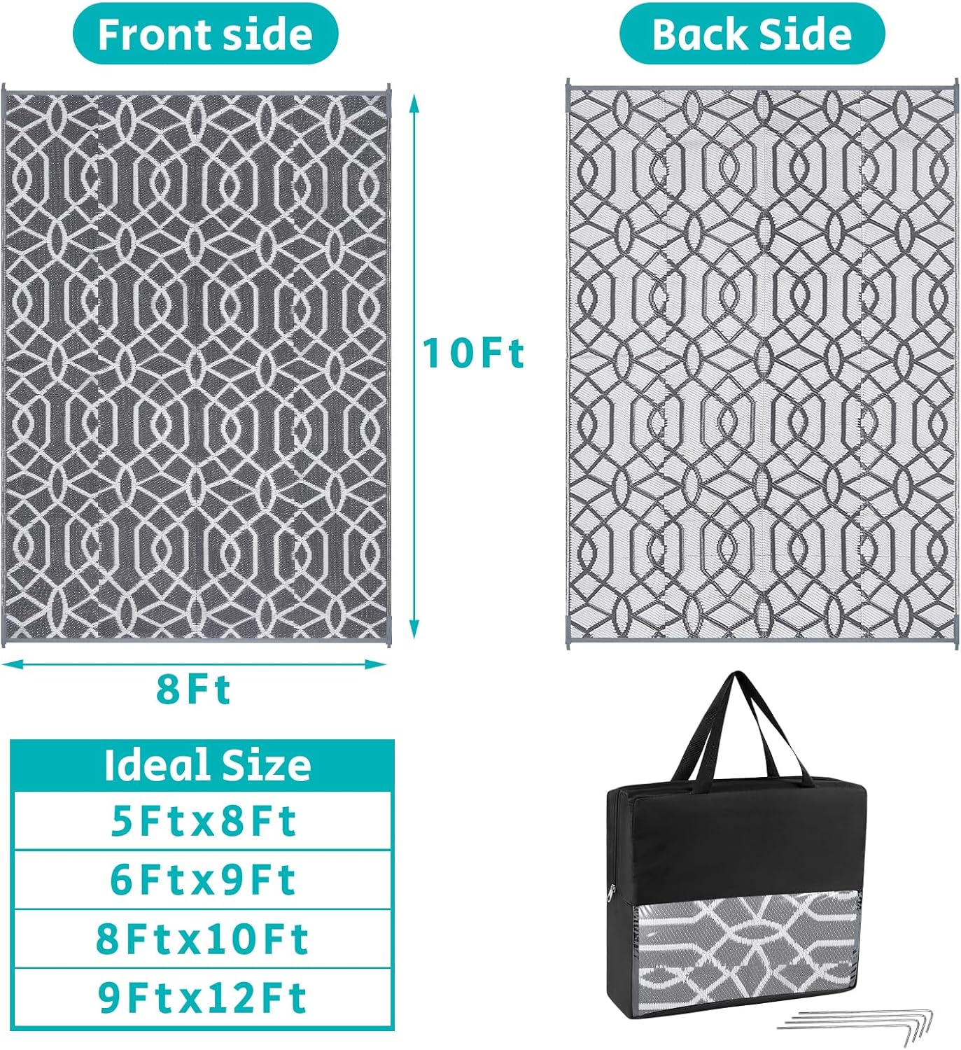 • Reversible Outdoor Rugs: Featuring a classic moroccan pattern on both sides, this 8x10 ft outdoor area rug allows you to instantly refresh your patio, porch, backyard, deck, RV campsite. And this outdoor deck rug is reversible, two-sided design allows you to have two different looks,both sides can blend perfectly with nature and look very full and comfortable.