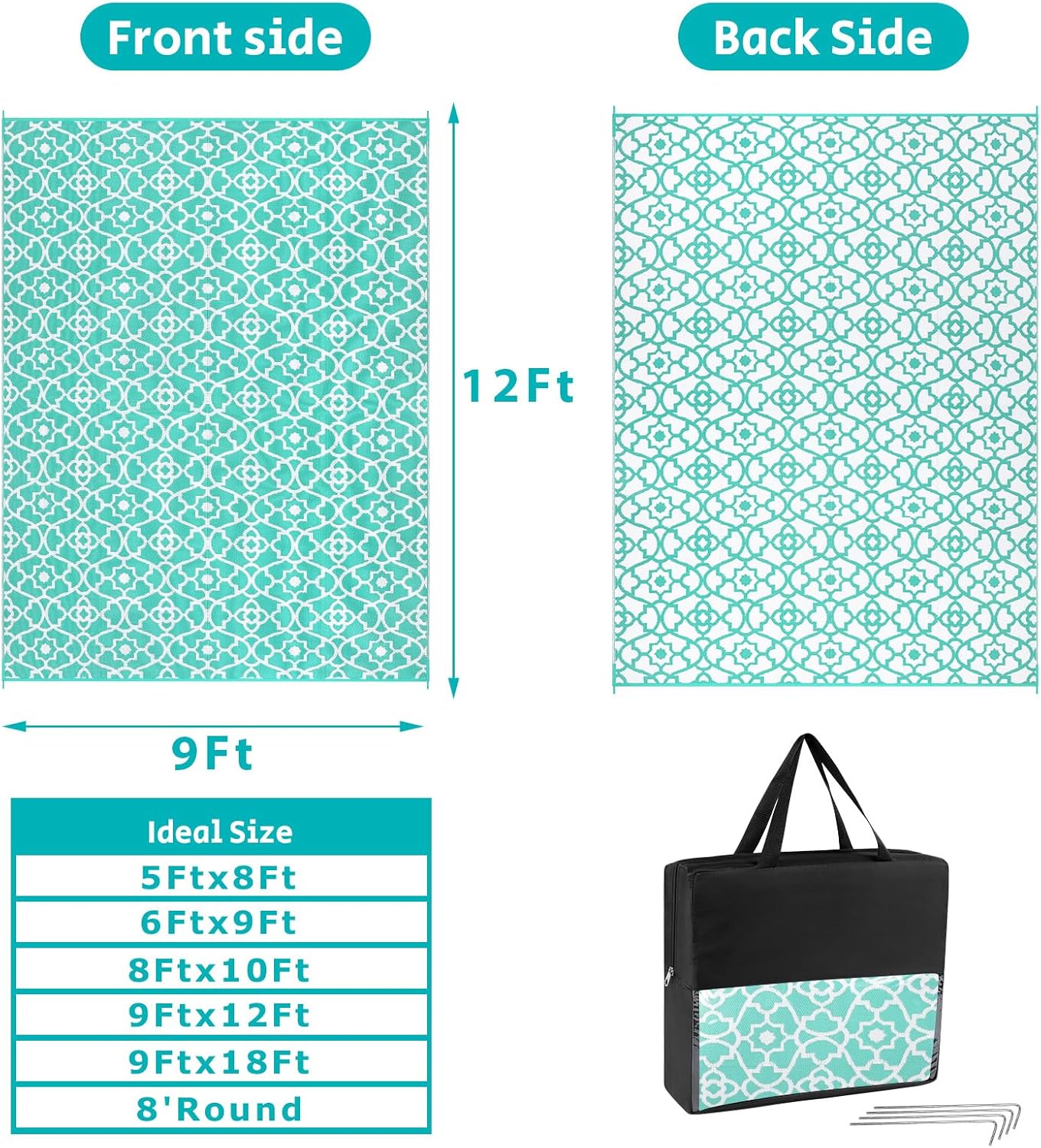 - XXXL Large Reversible Outdoor Rugs: Featuring a classic moroccan pattern on both sides, this rectangular 9x12 ft outdoor area rug allows you to instantly refresh your patio, porch, backyard, deck, RV campsite. And this outdoor deck rug is reversible, two-sided design allows you to have two different looks,both sides can blend perfectly with nature and look very full and comfortable.