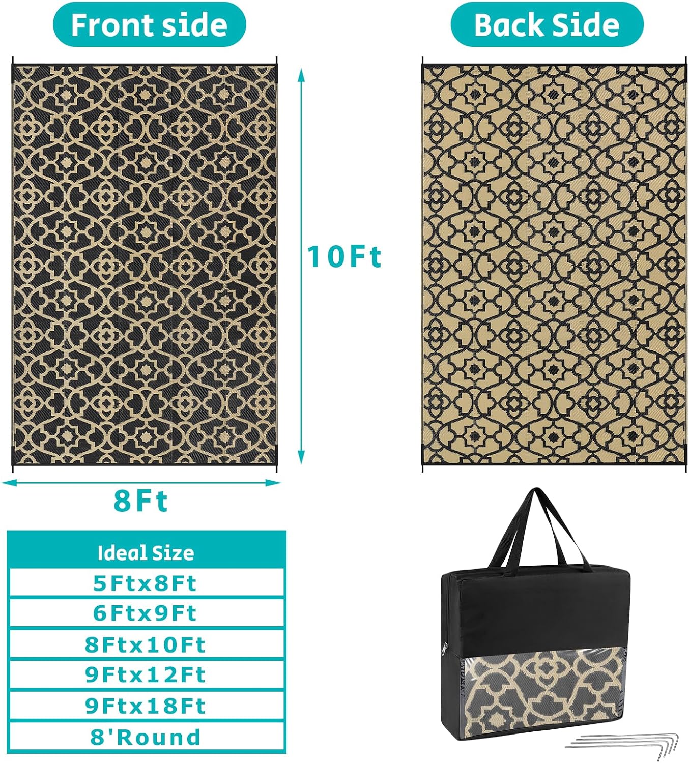 • XXL Large Reversible Outdoor Rugs: Featuring a classic moroccan pattern on both sides, this rectangular 8x10 ft outdoor area rug allows you to instantly refresh your patio, porch, backyard, deck, RV campsite. And this outdoor deck rug is reversible, two-sided design allows you to have two different looks,both sides can blend perfectly with nature and look very full and comfortable.