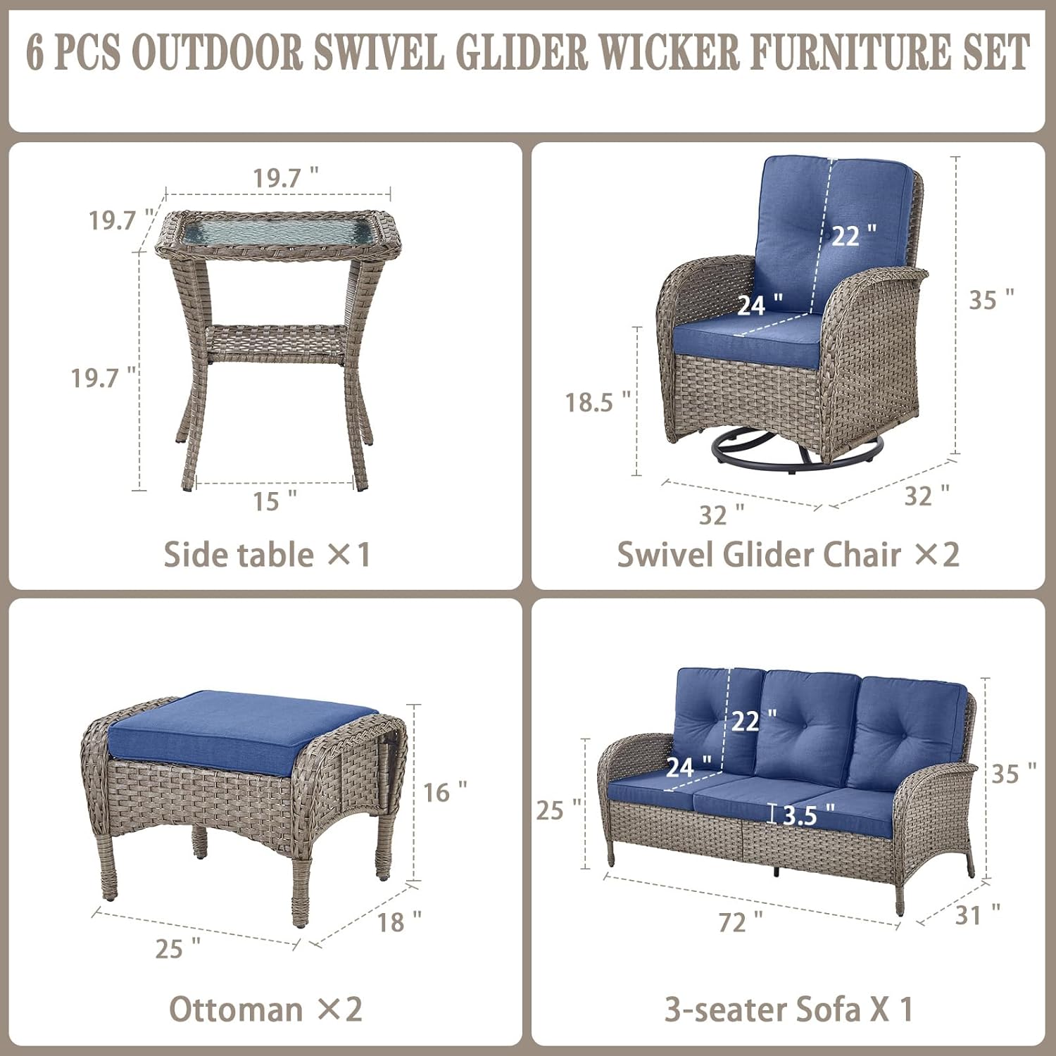- Size : 6 PCS - Swivel Glider & Sofa