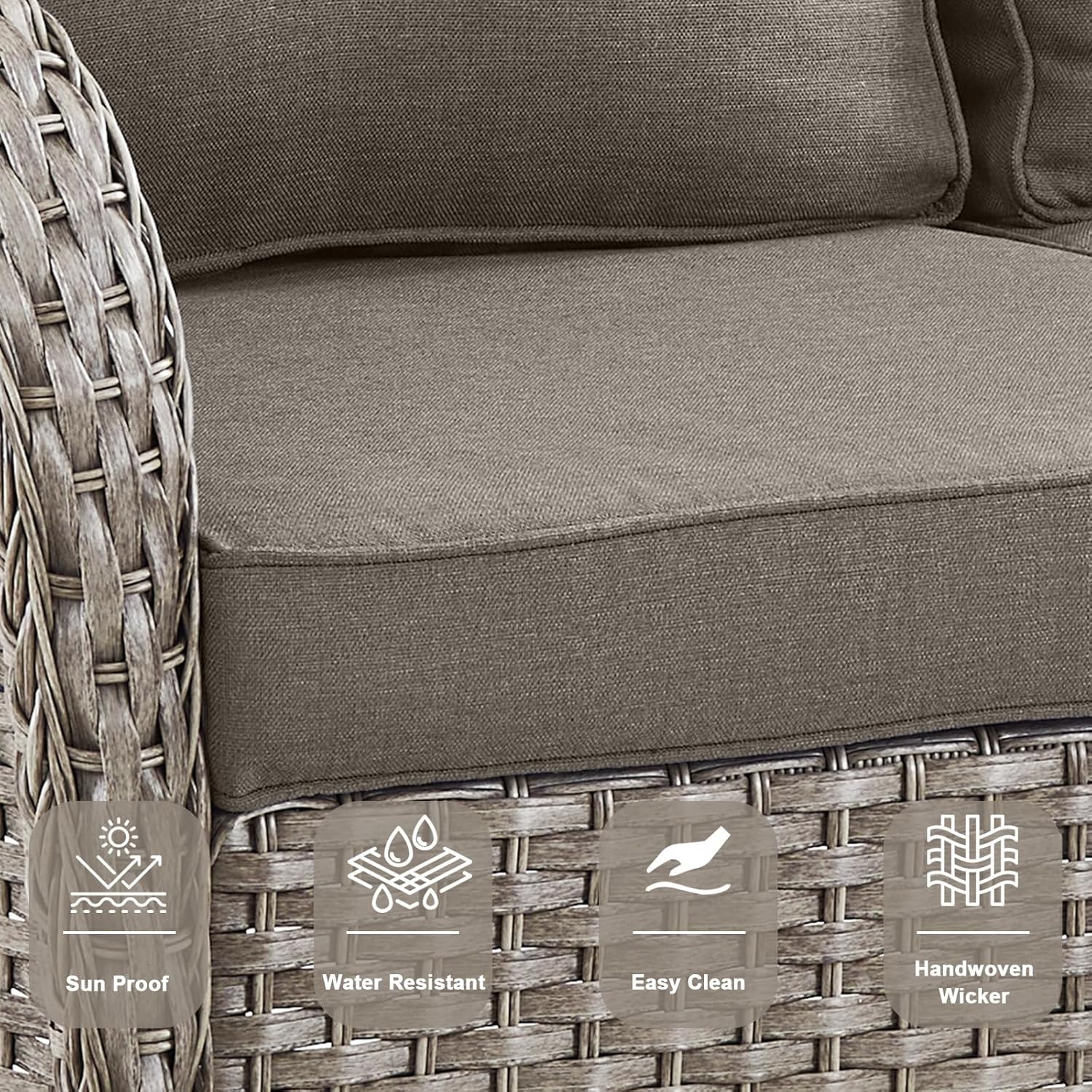 - 4.LUXURIOUS OUTDOOR RETREAT ENSEMBLE: Relax in the beautiful outdoors with this perfect 6 pieces patio glider furniture set. Our patio swivel rocker chair set with high quality foam cushion, comfortable and soft rebound good. The cushion cover is made of olefin outdoor water-resistant fabric. The seat and backrest are made of beautifully woven wicker coupled with ergonomic design, making it a classic upgrade for any porch, deck or patio.