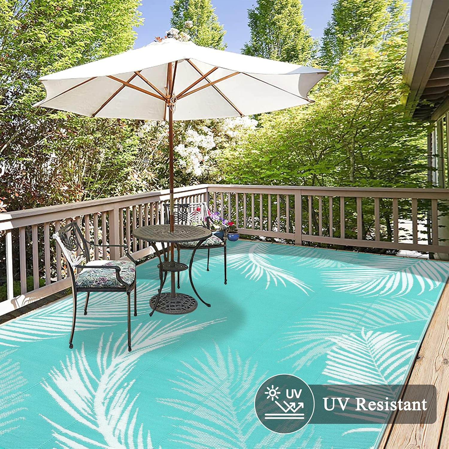 - Premium Quality: This outdoor patio rug is made of upgraded recyclable polypropylene material, which makes this outdoor carpet more durable, waterproof and no fading. UV coated for long lasting colors and heat treated edge to avoid fraying