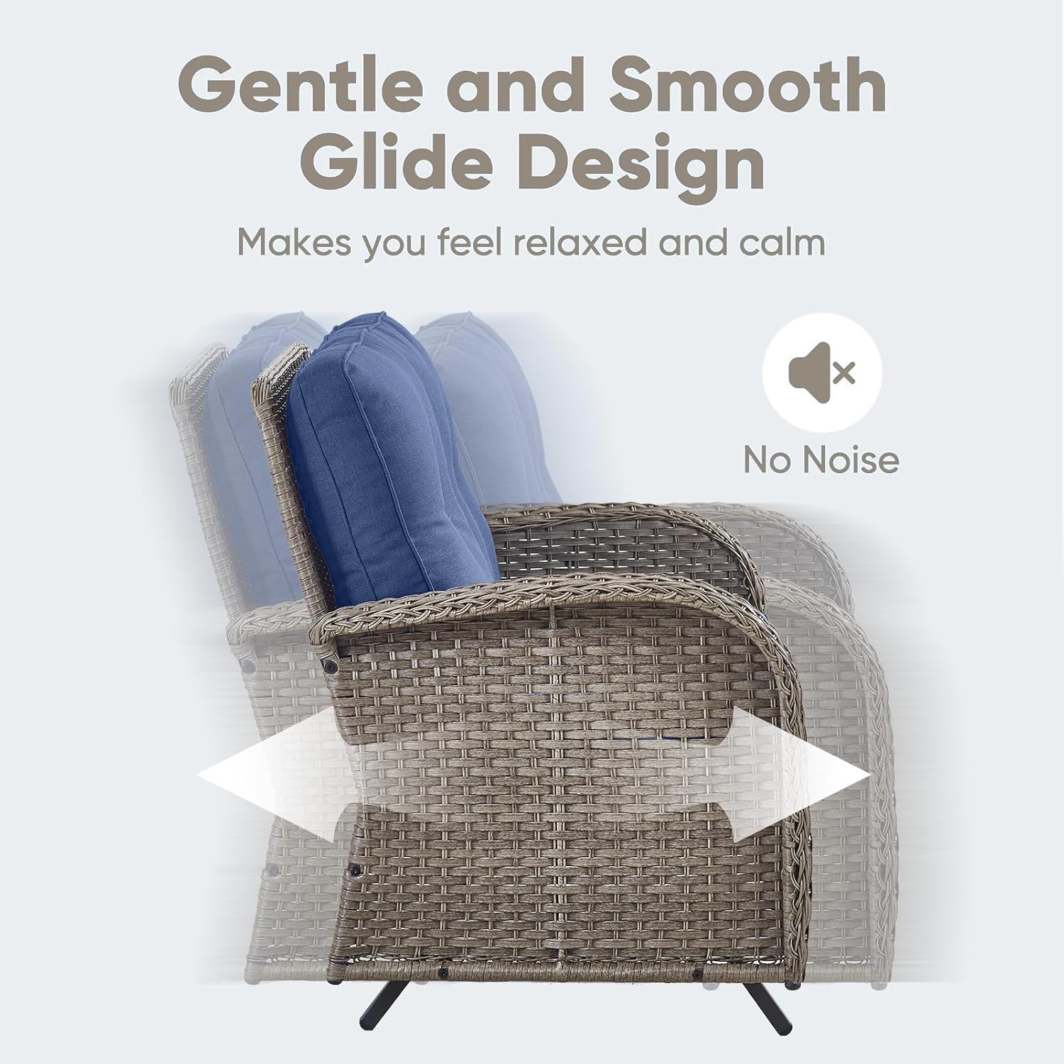 - 1.Patio Furniture Set Details: The 5-piece patio furniture set is the best choice for your patio, backyard or other outdoor space for your chatting needs. This 5 pieces patio furniture set includes a total of 2 swivel rocker chairs, 1 2-seater glider loveseat, 1 glass coffee table and 1 glass side table with removable and washable cushions.