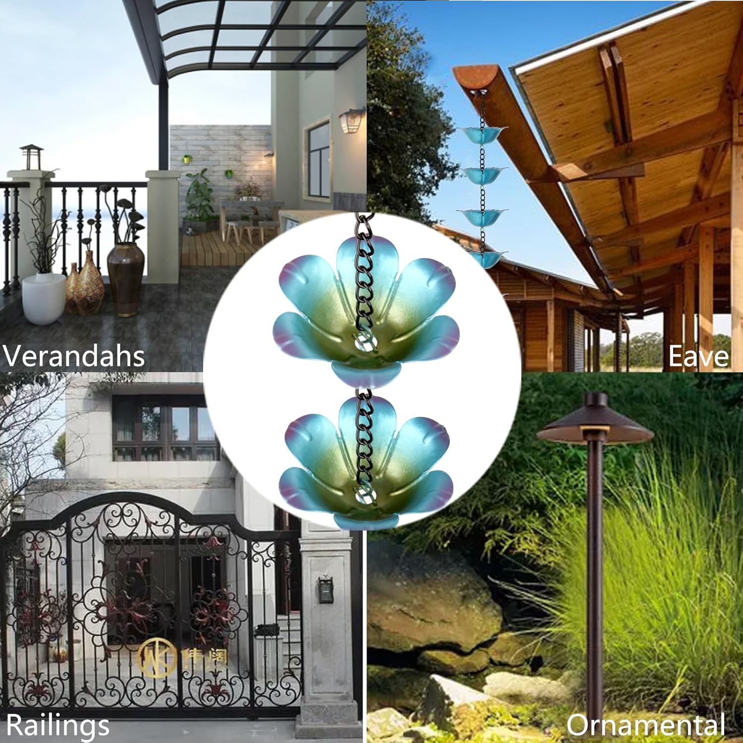 - PREMIUM QUALITY MATERIAL: The rain chain is made of durable iron material to ensure stability and durability in all weather conditions. Whether it's direct sunlight or rain, this rain chain will stand up to the elements and won't fade or break over time.