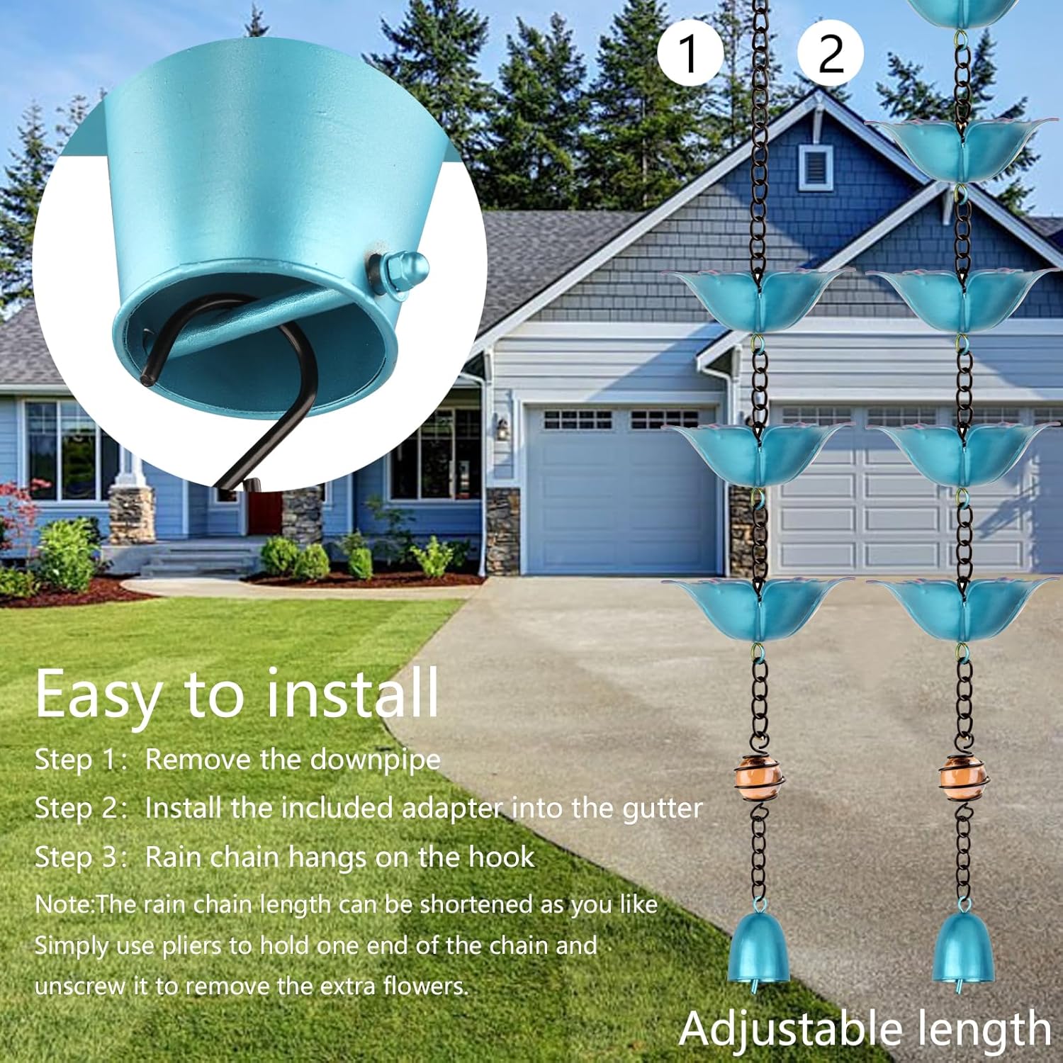 - PERFECT GIFT CHOICE: This Outdoor Flower Rain Chain is an ideal gift for your friends and family, practical and artistic at the same time. Whether it's a birthday, holiday or other special occasions, it can convey your care and blessings to them, making the recipient feel warm and surprised.