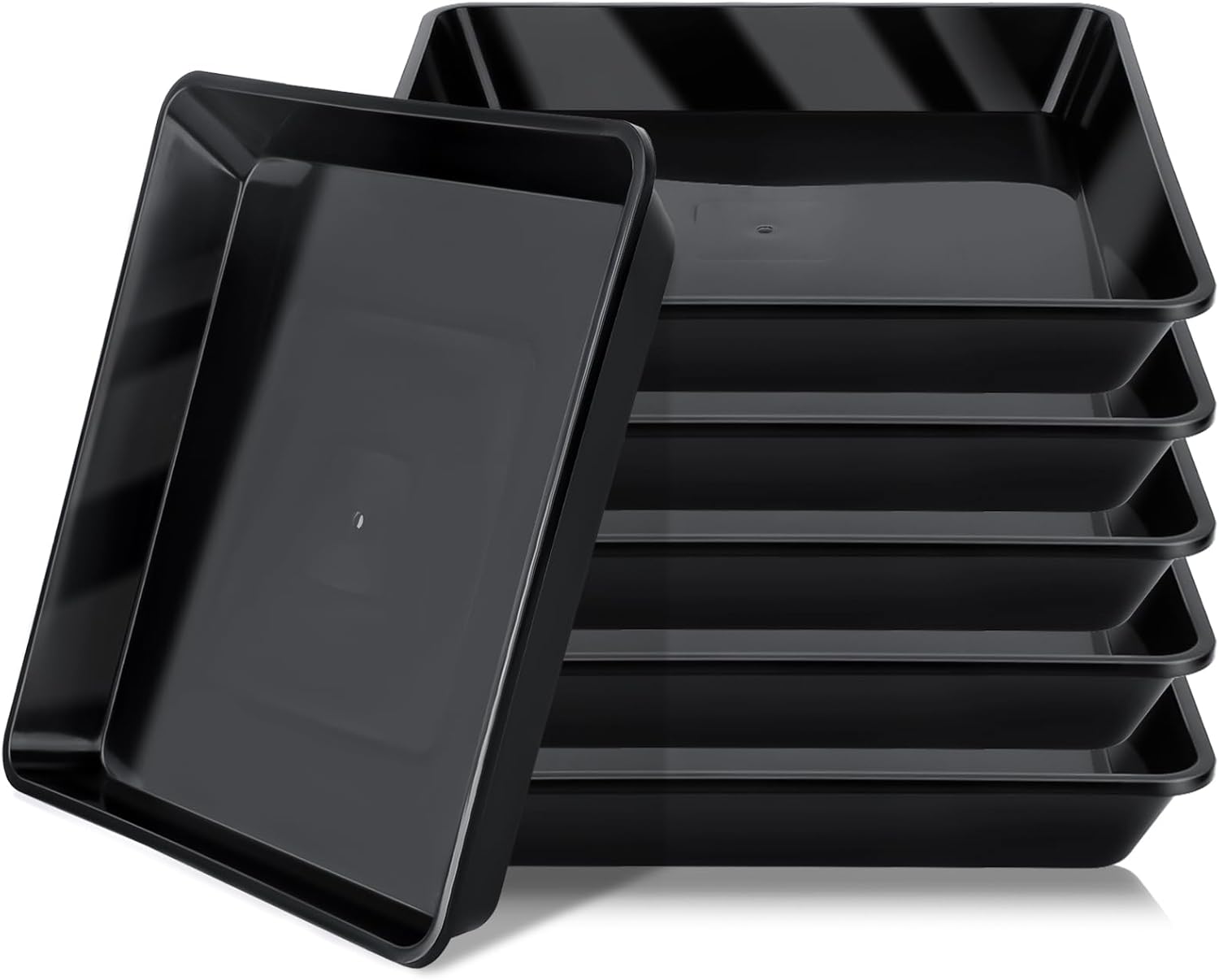 GREANER 8 Inch Humidity Tray, Black 6 PCS Plant Pot Drainage Tray, Indoor Plant Trays for Pots, Drip Trays for Potted Plants, Plastic Plant Trays for Pots, Seed Starter Growing Tray