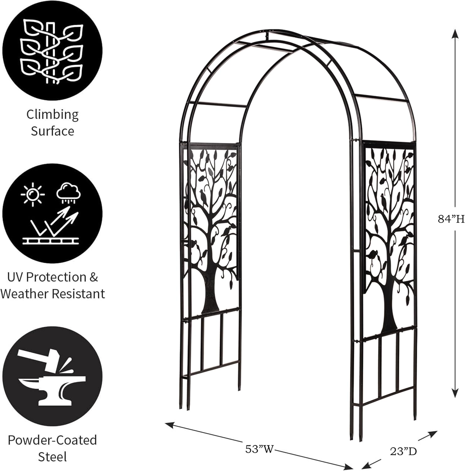 Evergreen Plow & Hearth Tree of Life Garden Arbor - 7 Feet Tall | Slim Metal Arch with Iron Trellis for Climbing Plants | Elegant Wedding Arbor | Outdoor Patio & Garden Decor