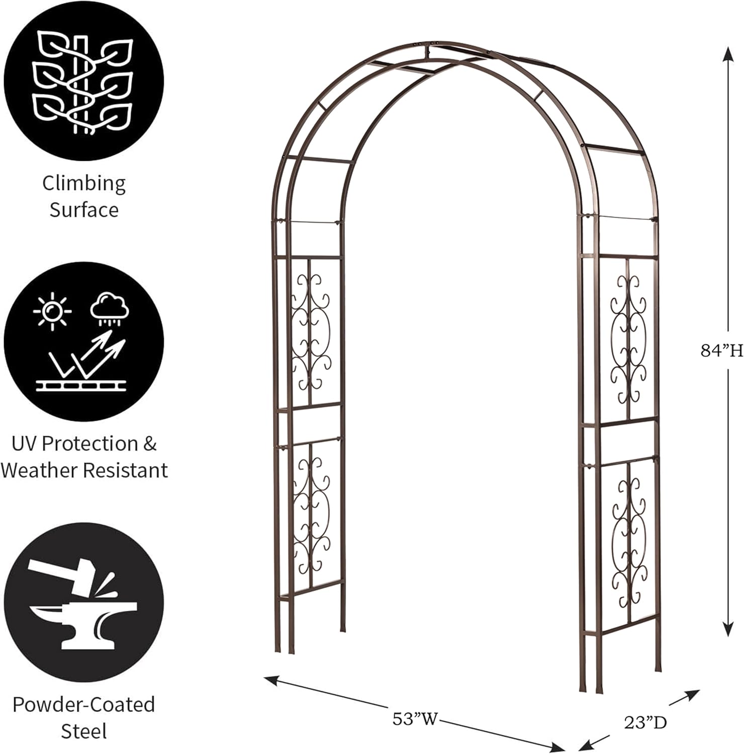 - VERSATILE OUTDOOR ACCENT – Measuring 84" H x 47" W x 16" D, this metal garden Trellis arch features an open design that allows foliage, forming a stunning natural canopy. Ideal for garden entryways, walkways, wedding arch décor, and outdoor celebrations it complements various landscaping styles, from traditional to modern.