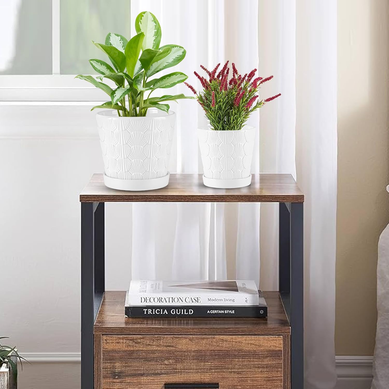 - Chic Modern Design: These flower pots with stylish shell embossed shell patterns are inspired by contemporary ceramic art. Their minimalist aesthetic effortlessly enhances any space, adding sophistication and charm to your home or office