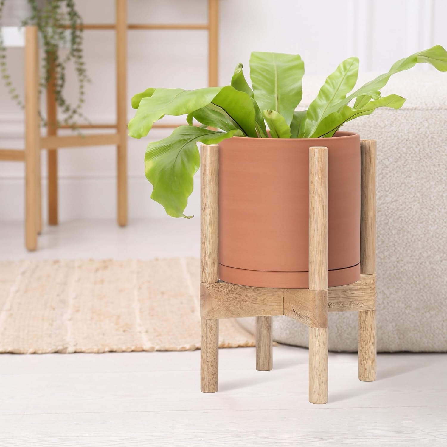 - A Complete Set: Mid-century terracotta planter, combined with a natural color, sculptural, solid wood stand that match perfectly together and looks great in anywhere.