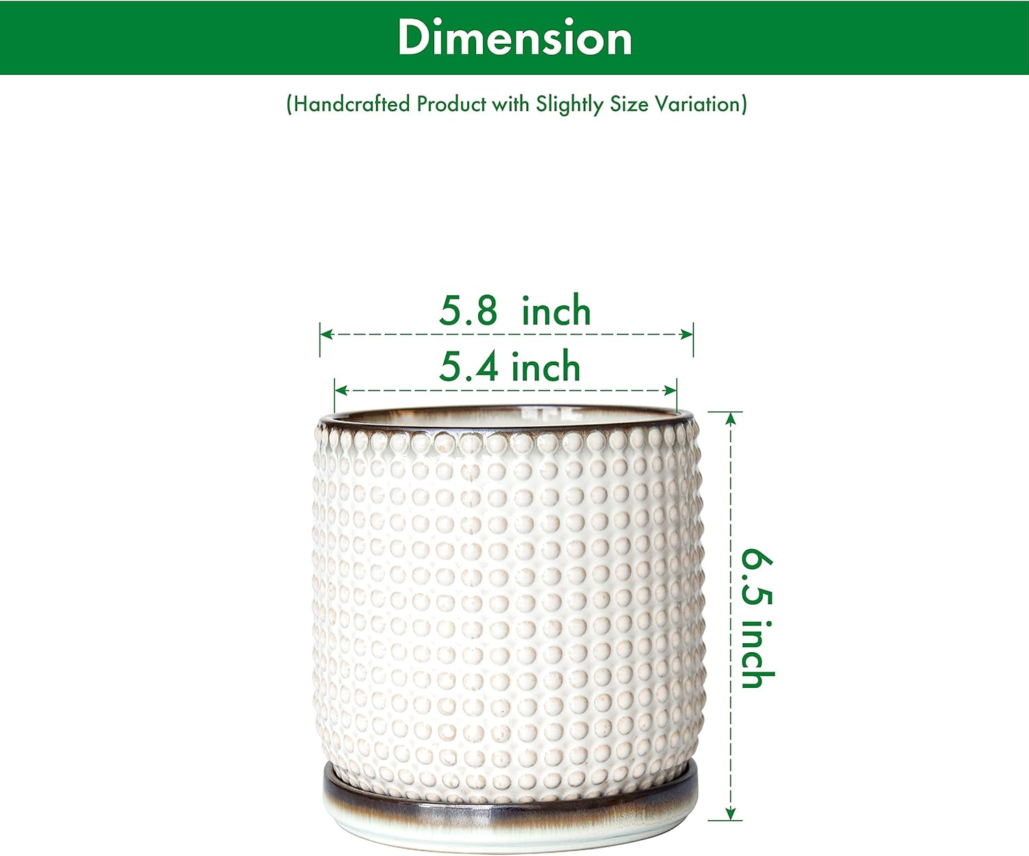 - Size & Dimension: 5.8" in outside diameter (OD), 5.4" in inside diameter (ID), 6.5" in height (H).