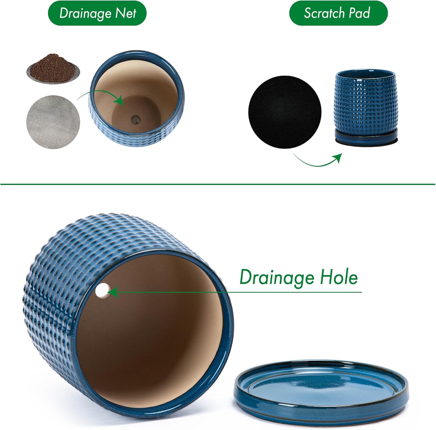 - Included: Each pot comes with drainage hole and fitting detachable drip tray.