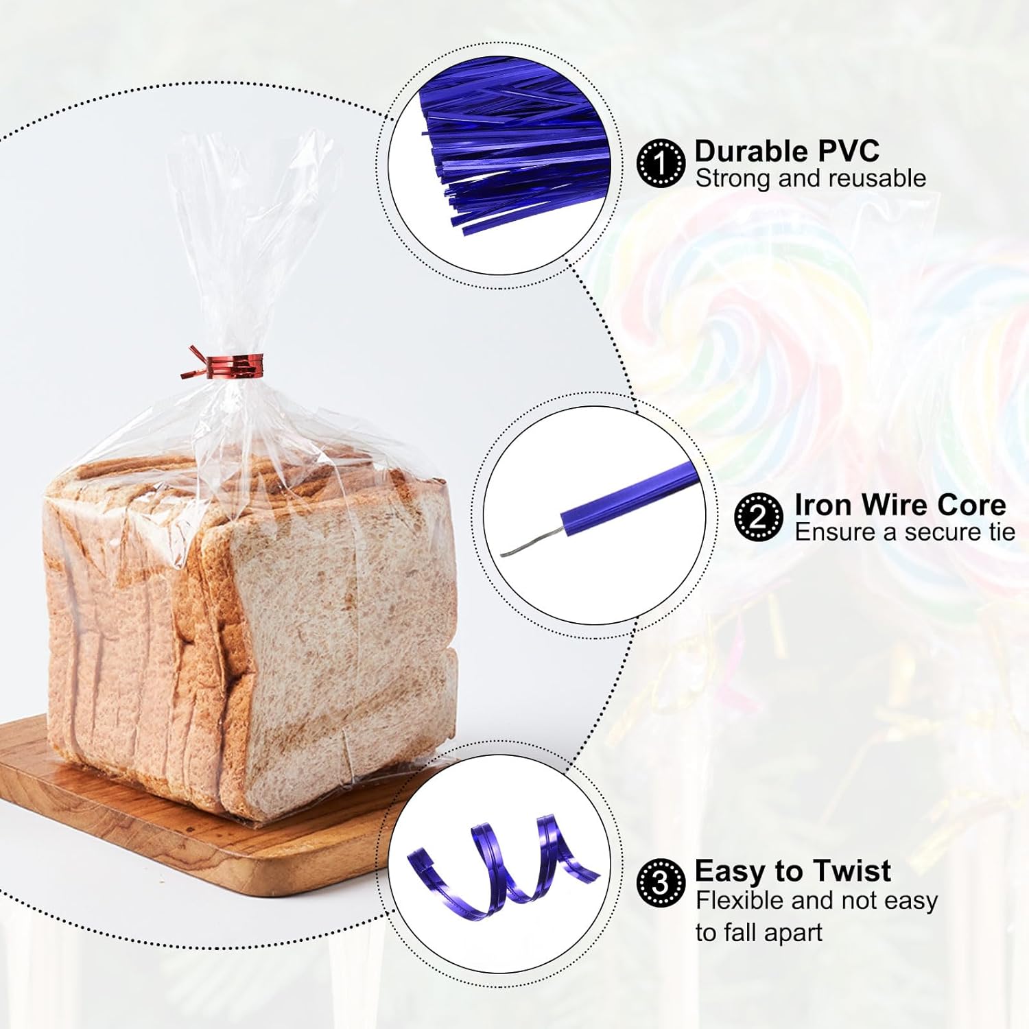 - Material - Made of durable PVC material with iron wire core, the bread twist ties are strong and reusable, which can be twisted flexibly and are not easy to fall apart.