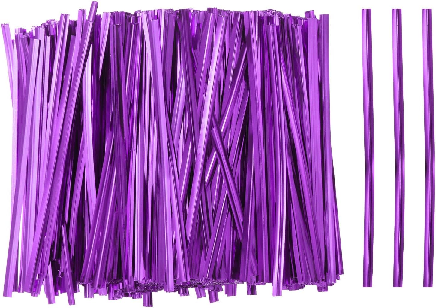 HARFINGTON 800pcs Bag Twist Ties 4" Reusable Plastic Metallic Twist Ties Wire Cable Ties for Party Bread Candy Cake, Purple
