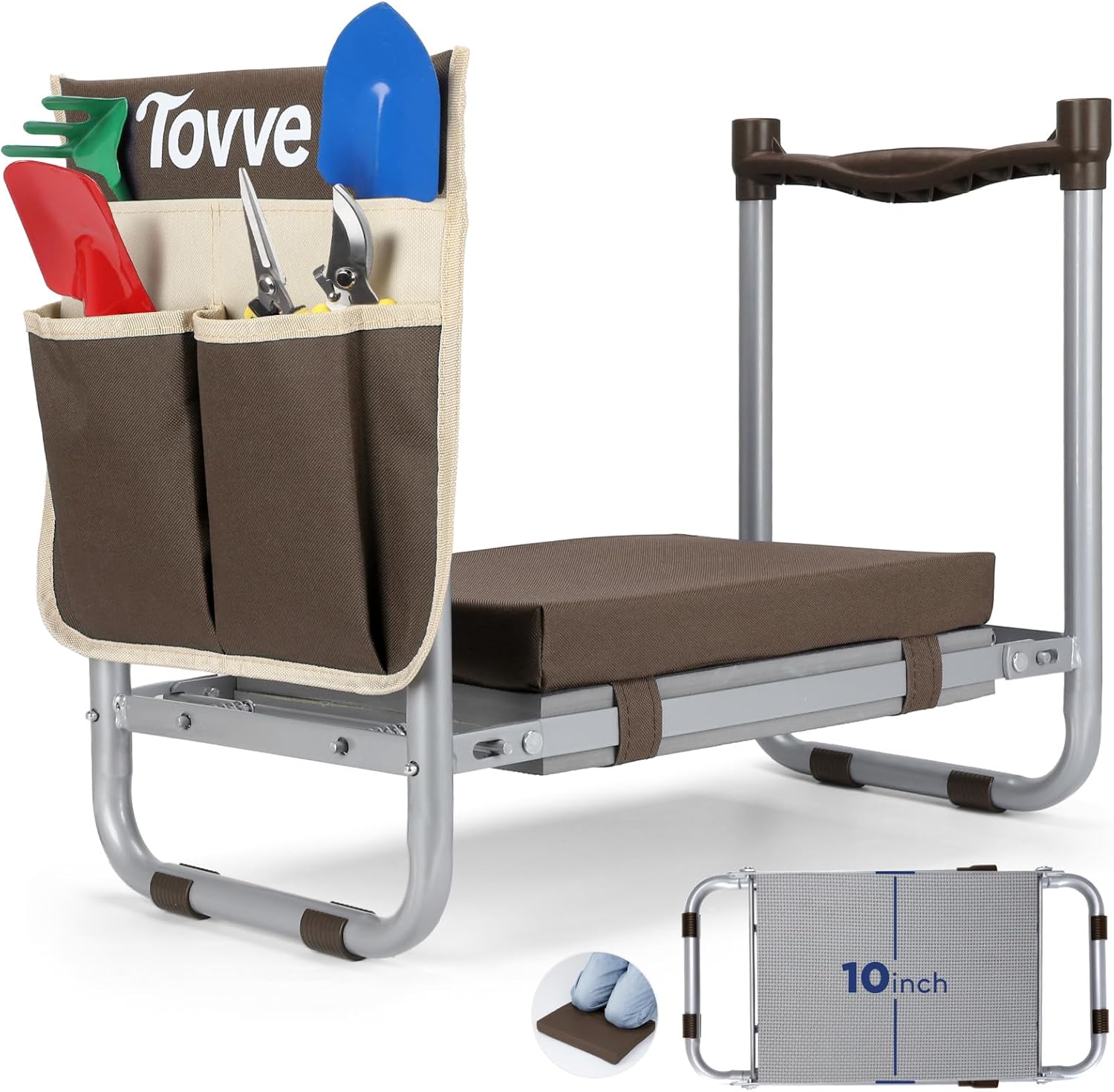 - ă2 in 1 Garden StoolăThis 10-inch wide garden kneeling seat provides you with better comfort and support, making gardening easier. It can be used as a comfortable garden seat for pruning taller plants. It can also be laid flat on the ground as a supportive kneeling pad to avoid dust and weeds when kneeling to weed. Reduce the pressure on your back and knees when gardening.