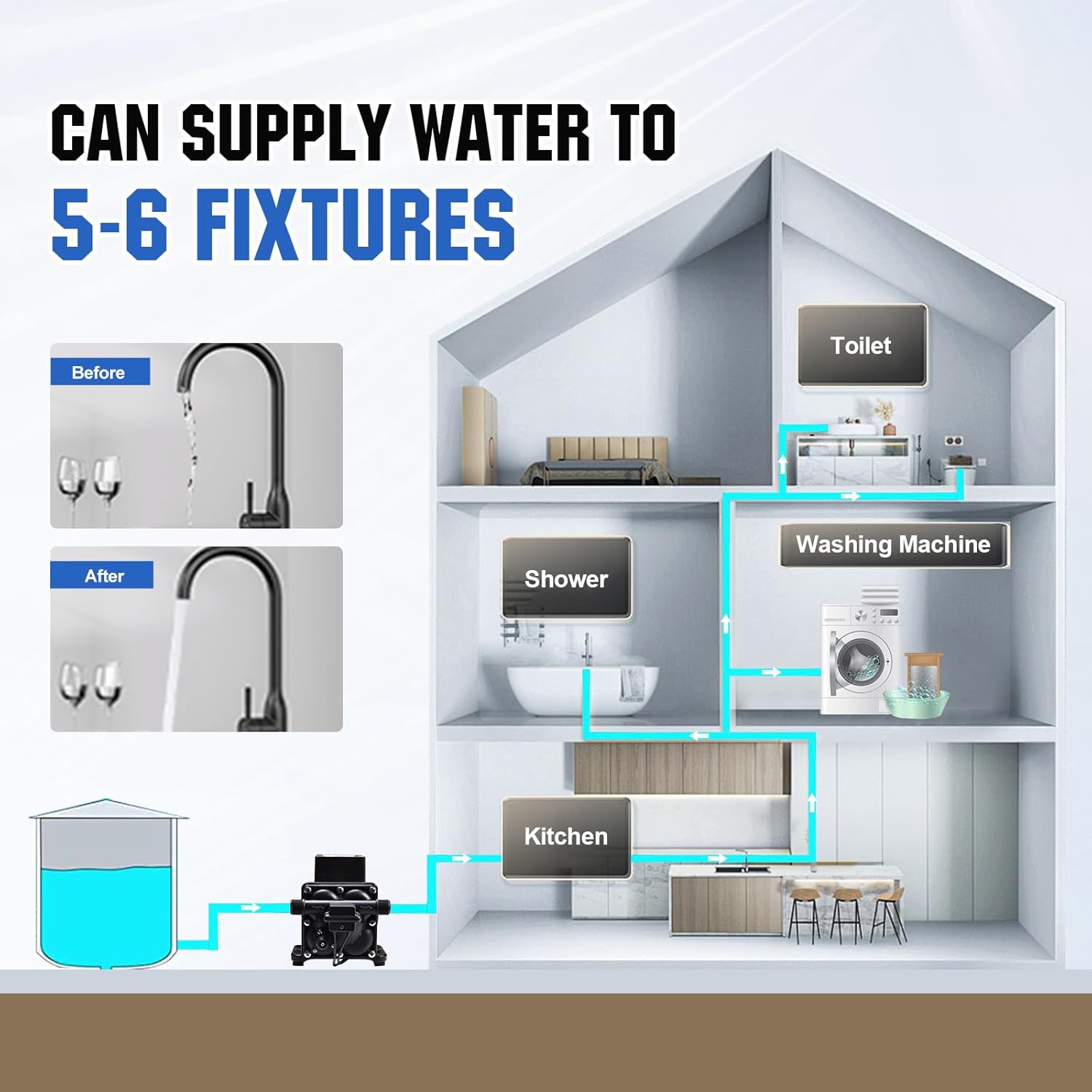 DC HOUSE Brushless 110V Water Pressure Transfer Pump 6.0 GPM 55 PSI Self Priming On Demand Electric Water Diaphragm Pump 110 Volt AC for Home Garden Irrigation Rain Barrel Pool