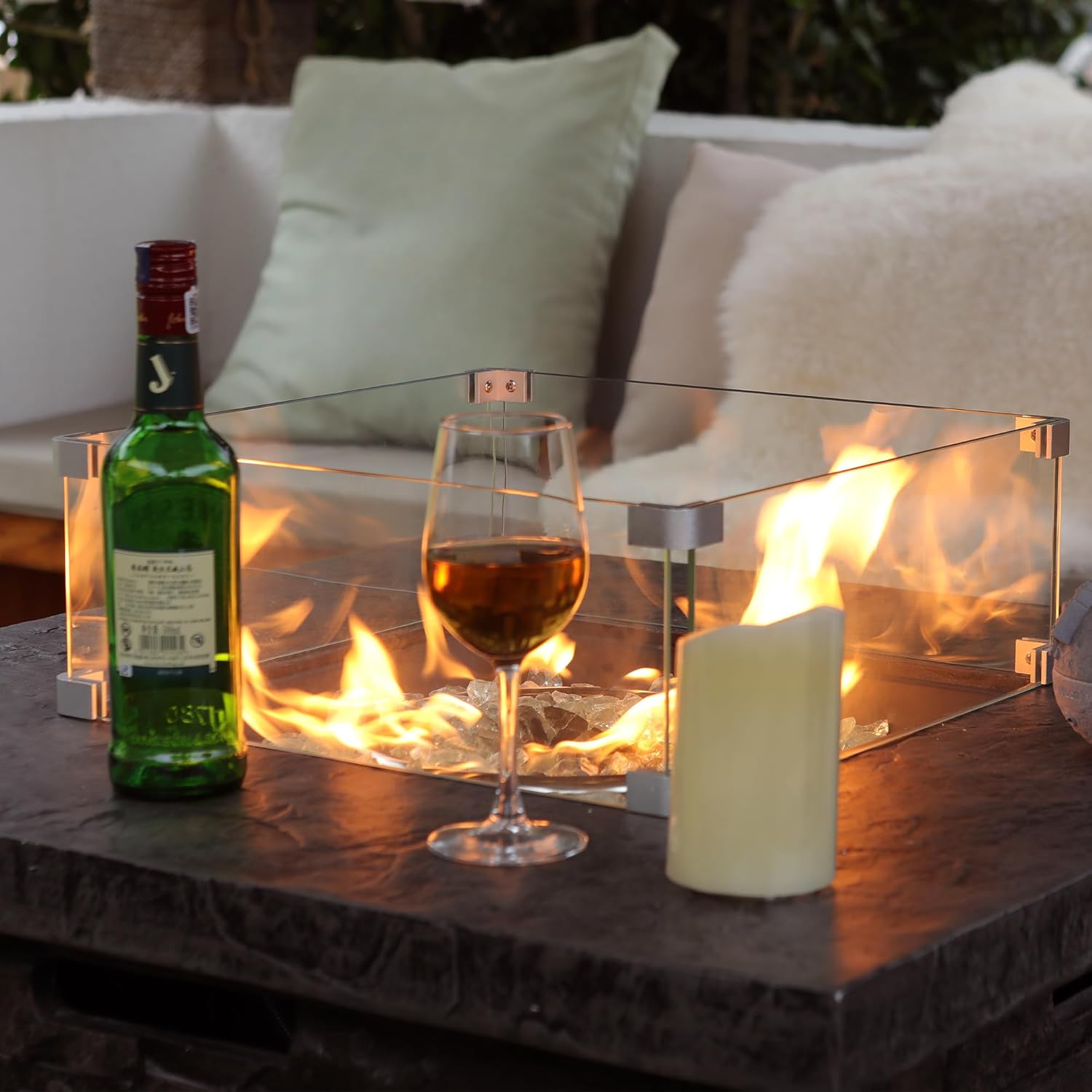- 🔥 Glass Wind Guard: This square fire pit table comes with a matching glass guard to protect you from fire damage and increases aesthetics. This is made of tempered glass so you can rest assured of the quality and arrange this piece however you please and your set will always look classy.