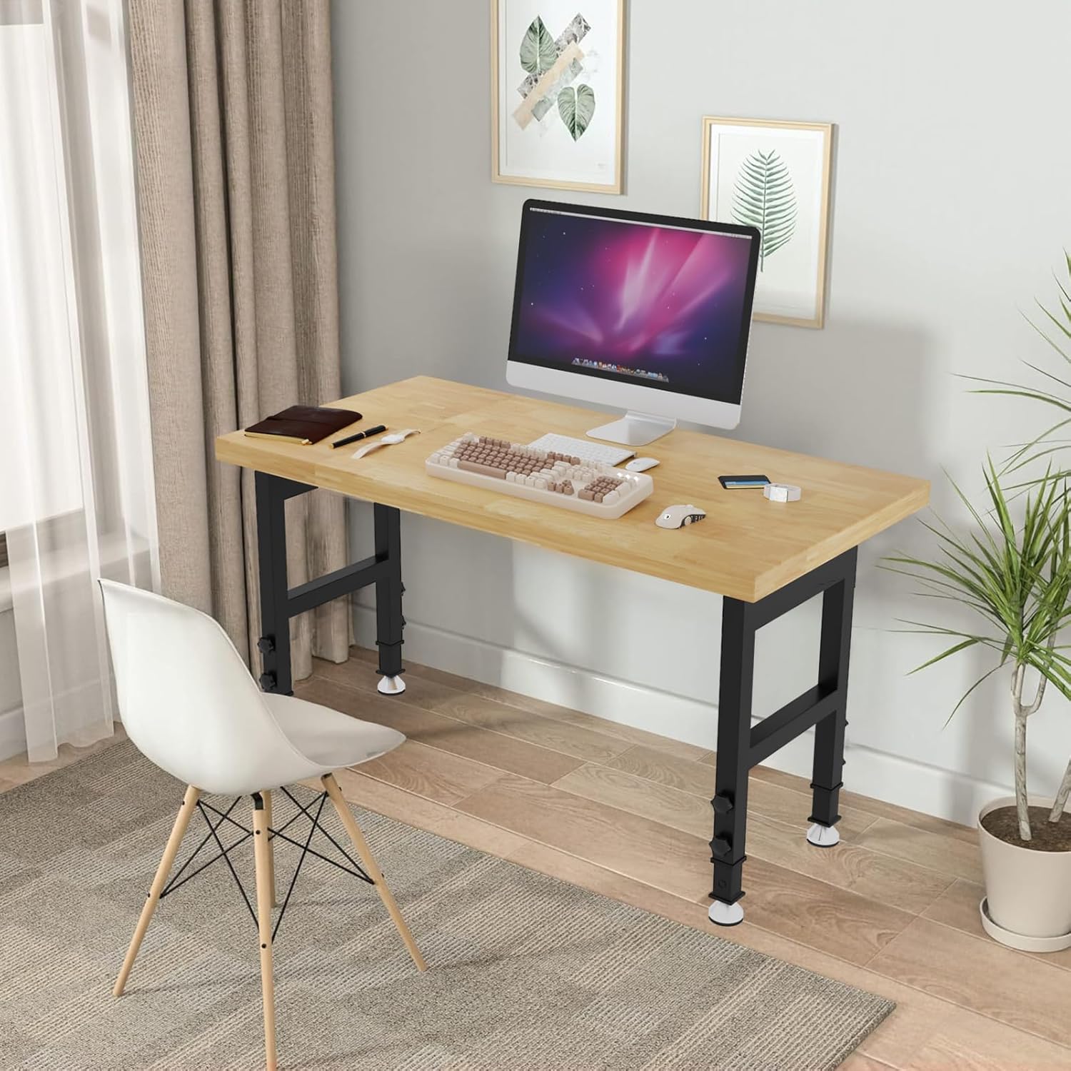 - [engineered for heavy-duty use]: Reinforced with four steel crossbars on each side, it offers superior stability. Sturdy iron brackets and durable solid wood support up to 3000 pounds. With a thickened wood work surface measuring 48''Ă—24''Ă—39'', it provides a reliable and long-lasting workspace solution.