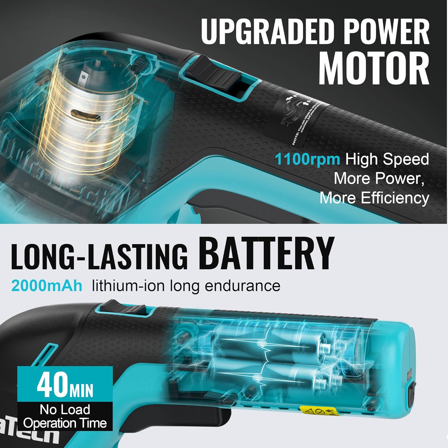 - Type-C Charging & Long Runtime: Powered by a 2000mAh lithium battery with a high-efficiency 3.6V motor. Offers up to 50 minutes of use on a full 3.5-hour charge. Convenient USB-C charging via phone charger, car, laptop, or power bank