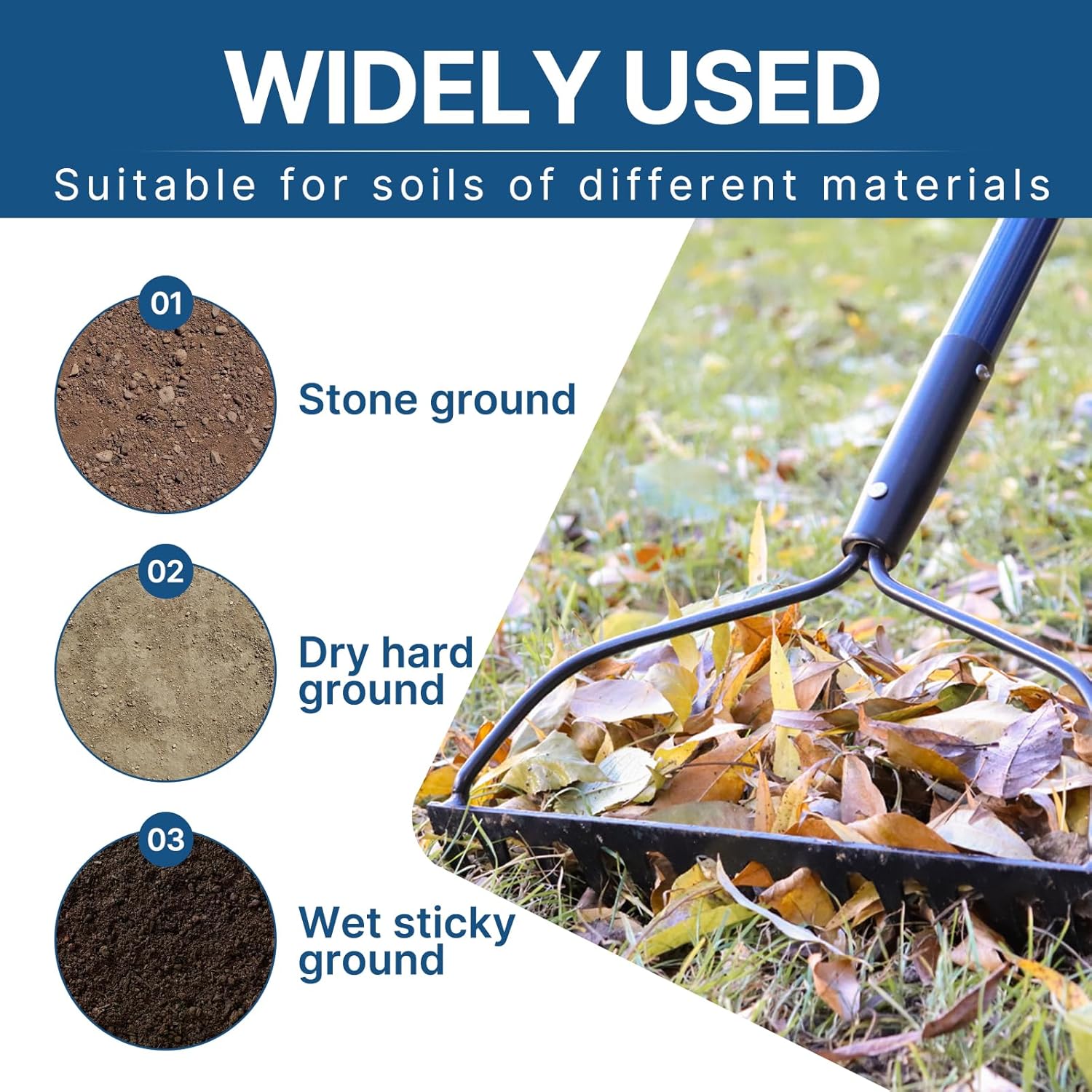 - Super Strong Material:This gardening rake head adopts integrated stamping technology,with no welding points,making it more sturdy.Paired with a fiberglass handle,it completely eliminates the troubles caused by broken wooden handles.