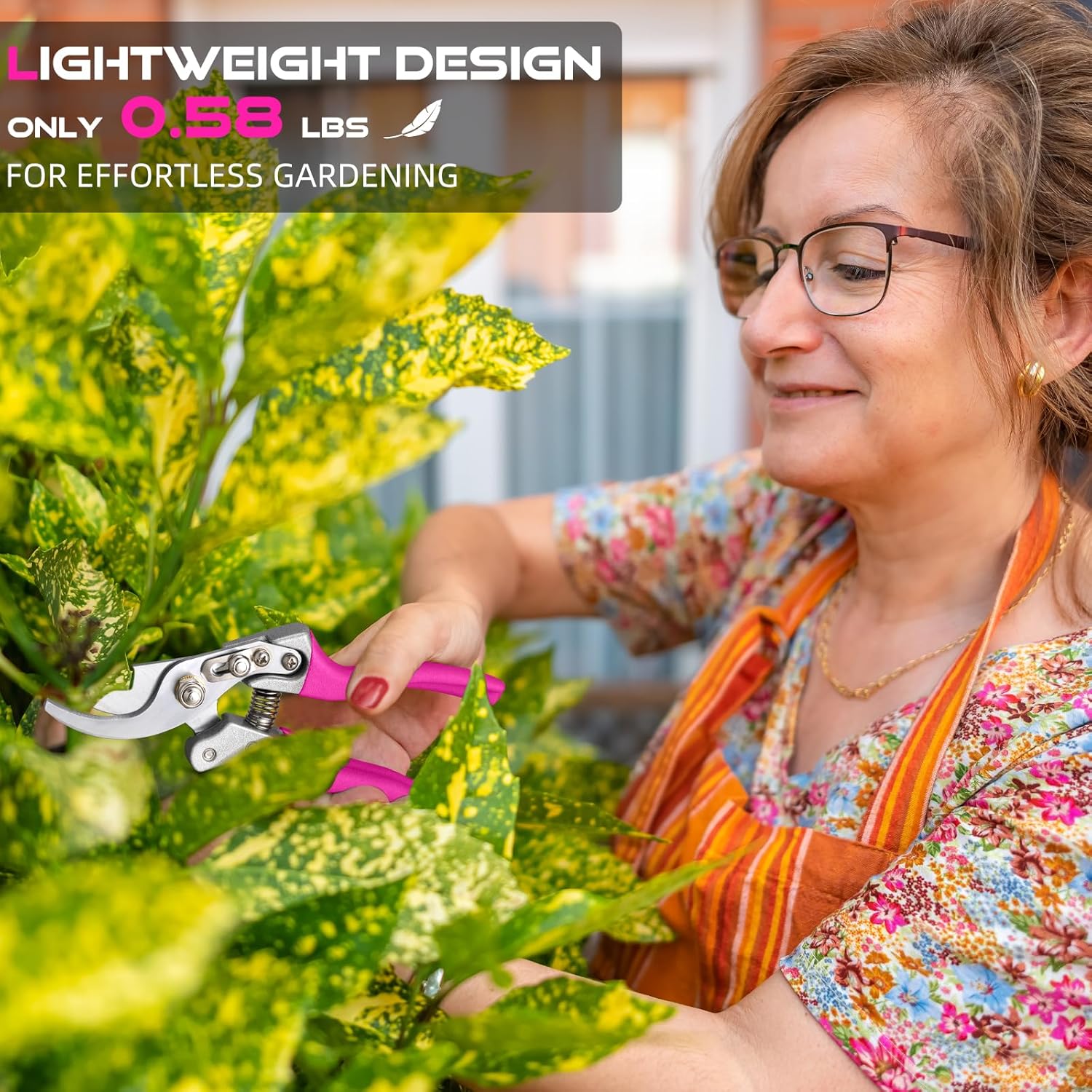 8.5" Professional Bypass Pruning Shears – Heavy Duty Garden Scissors & Clippers for Branch Trimming, Ultra Sharp SK5 Blade, Ergonomic Handle, Perfect Gardening Gift for Women, 2025 Pink Tools