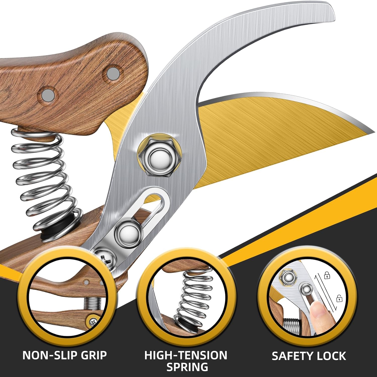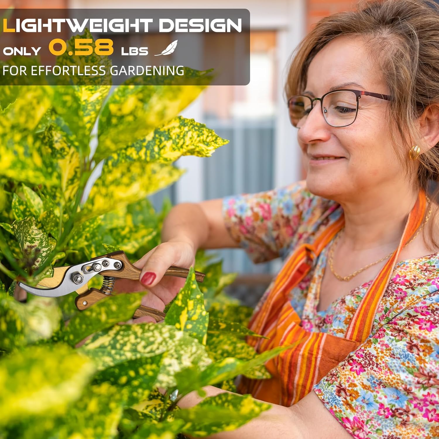 8.5" Professional Bypass Pruning Shears – Heavy Duty Garden Scissors & Clippers for Wood & Tree Trimming, Ultra Sharp SK5 Blade, Ergonomic Handle, Perfect Gardening Gift, 2025 Wood-Like Finish