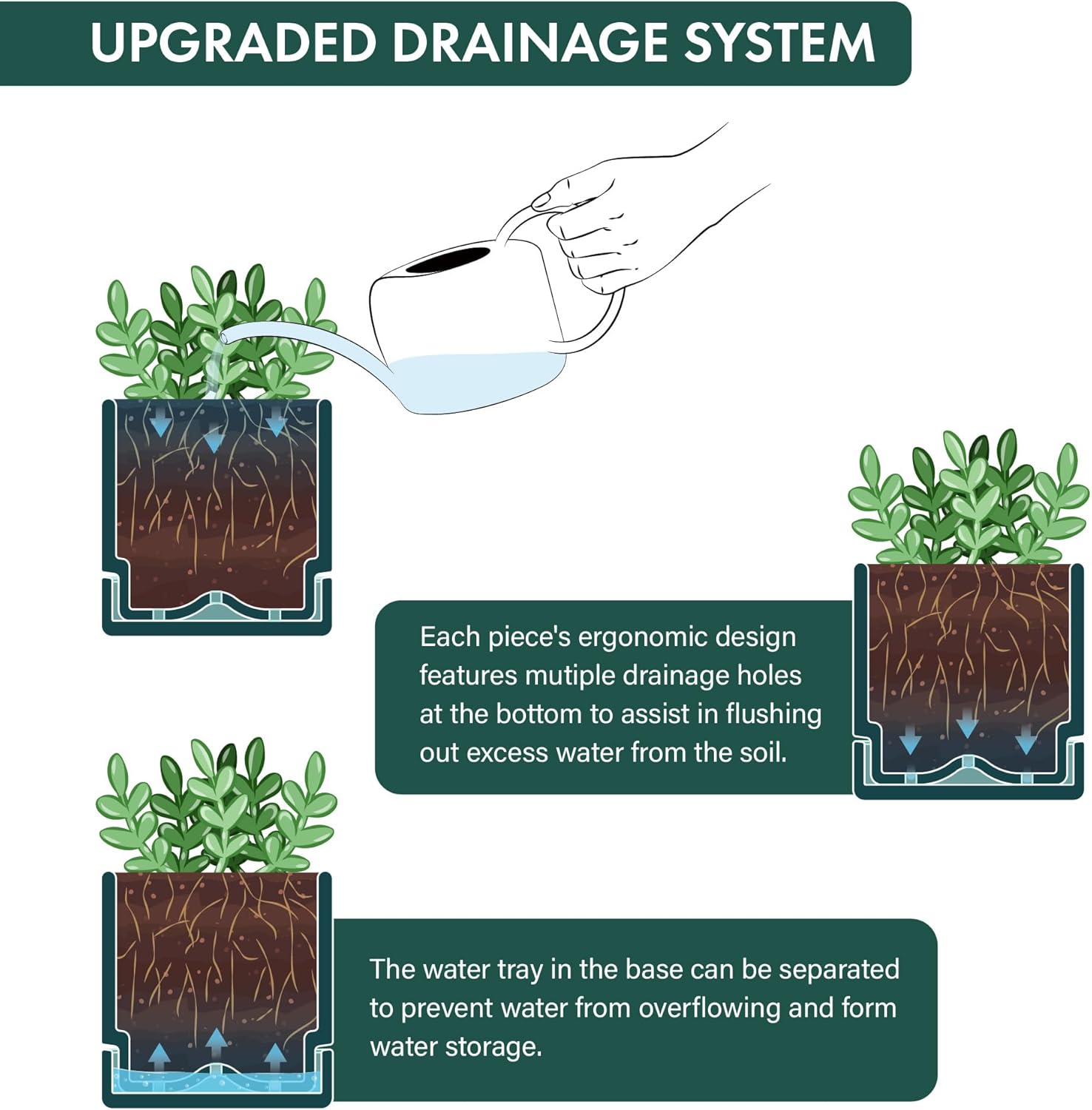 - Excellent Drainage and Tray: The pot features strategically placed drainage holes at the bottom, along with detachable saucers that fit perfectly. This ensures optimal drainage for your herbs, making it ideal for window herb gardens.