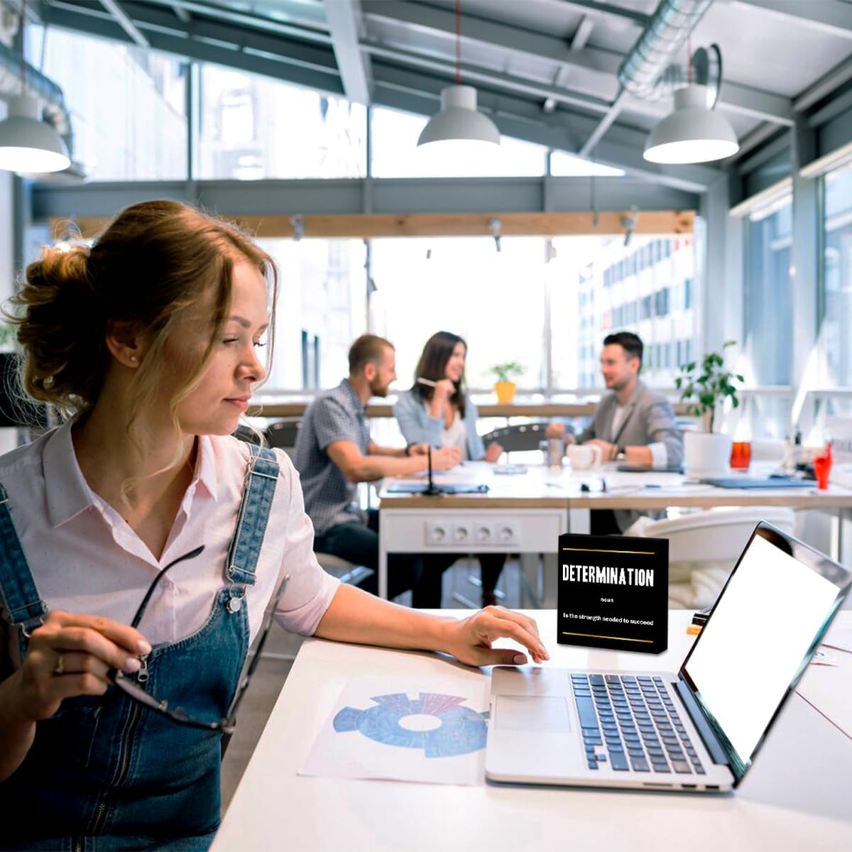 Determination Noun Entrepreneur Black Wooden Box Sign, Inspirational Office Decor Decorative Table Shelf Desk Decor, Rustic Workplace Farmhouse Home Bedroom Office Decorations Desk Accessories