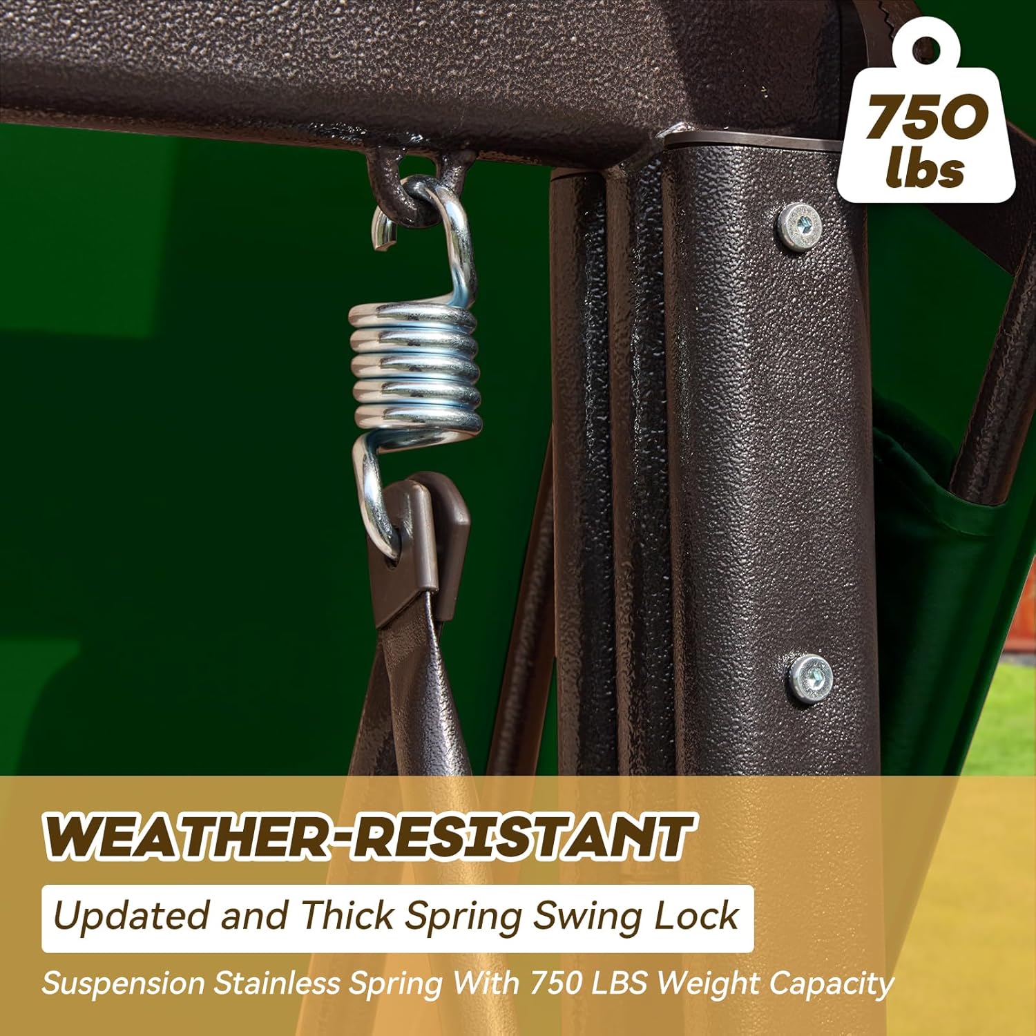 - ăSturdy and Safe Constructionă: The maximum weight capacity of porch swing is 750 pounds, our glider swing is designed for 3 adults to sit comfortably. The swing outdoor has a reliable buckle on backrest, ensuring stability and preventing any unwanted swinging. The double protection of 3 seat garden swing is designed for preventing accidental tipping.