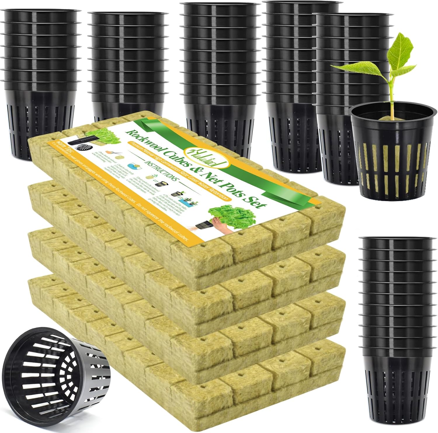 • Value Package Includes: You will get 144 1.2-inch rock wool cubes and 120 2-inch net cups. This is a pretty good starter kit for someone wanting to get started in aquaponics or hydroponics.The rock wool helps hold in moisture, and the pots give it stability and transportability. This will help yields and sprouting time.
