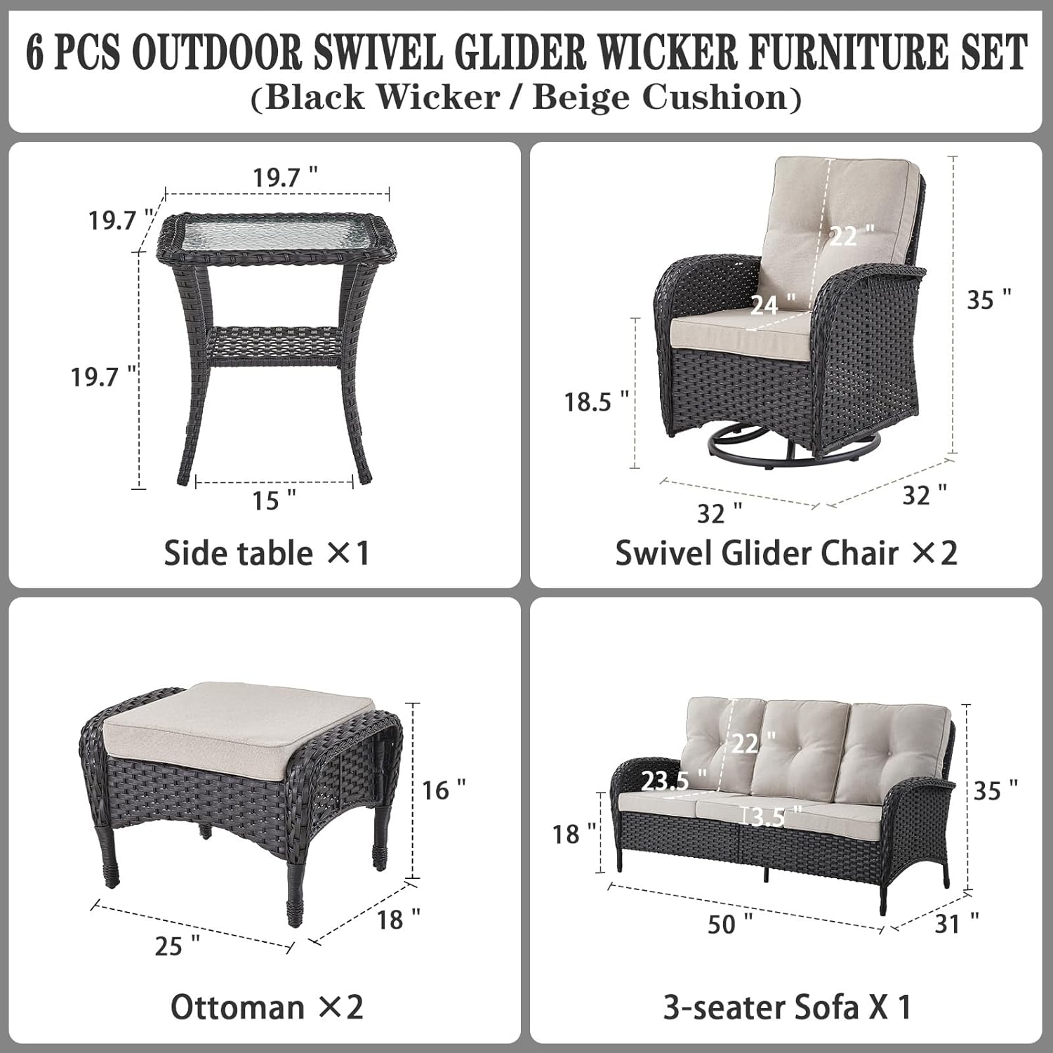 - Size : 6 PCS - Swivel Glider & Sofa
