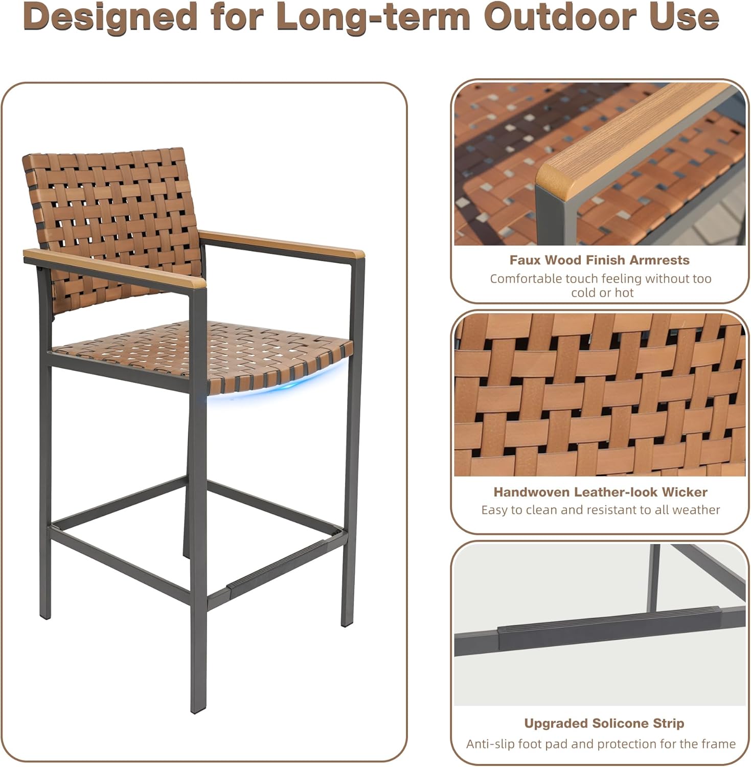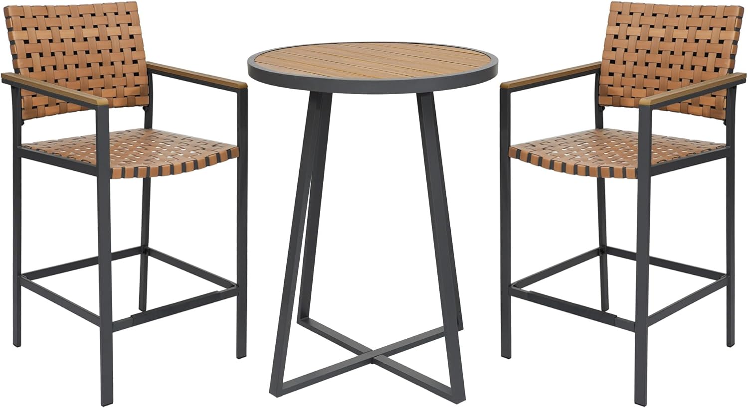 - Sturdy and Weather-Resistant: 3-Piece Bar Table and Chairs Set features thickened metal frame for rust-resistance and seat & backrest by leather resin woven for stylish look. The bar table of the outdoor bistro set have X-brace for stable support