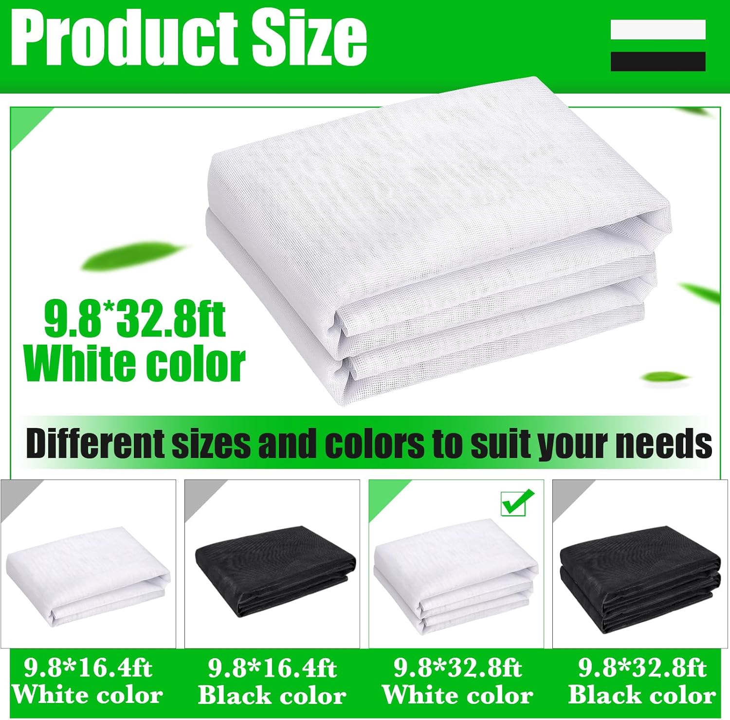 - Packaging and size: You will receive a large white mesh barrier measuring about 9.8 x 32.8ft, with a very dense mesh garden mesh pest barrier that can protect your garden effectively