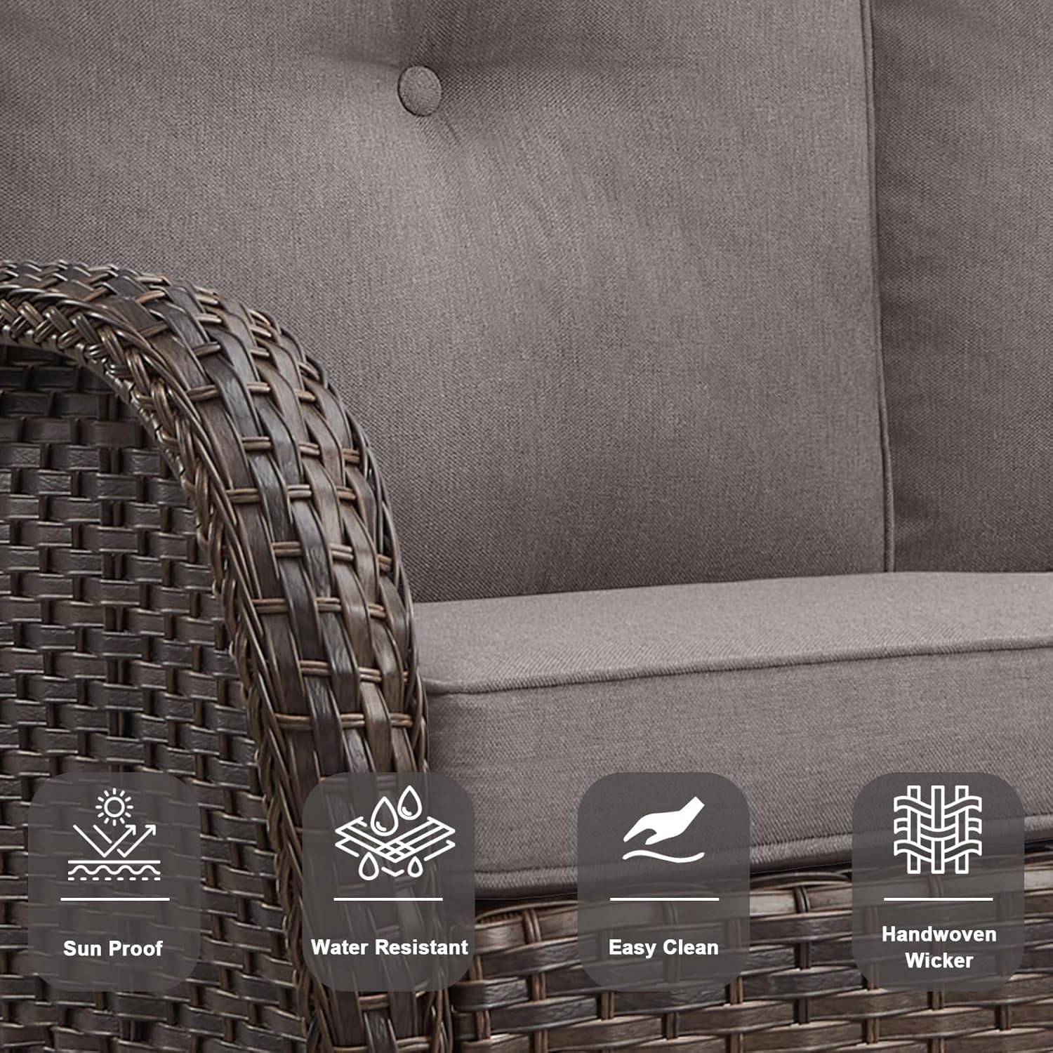 6 Piece Patio Conversation Sets - Wicker Patio Furniture Sets with Outdoor Swivel Rocker Chairs Outdoor Couch Perfect for Deck Patio Backyard, Brown Wicker Grey Cushion