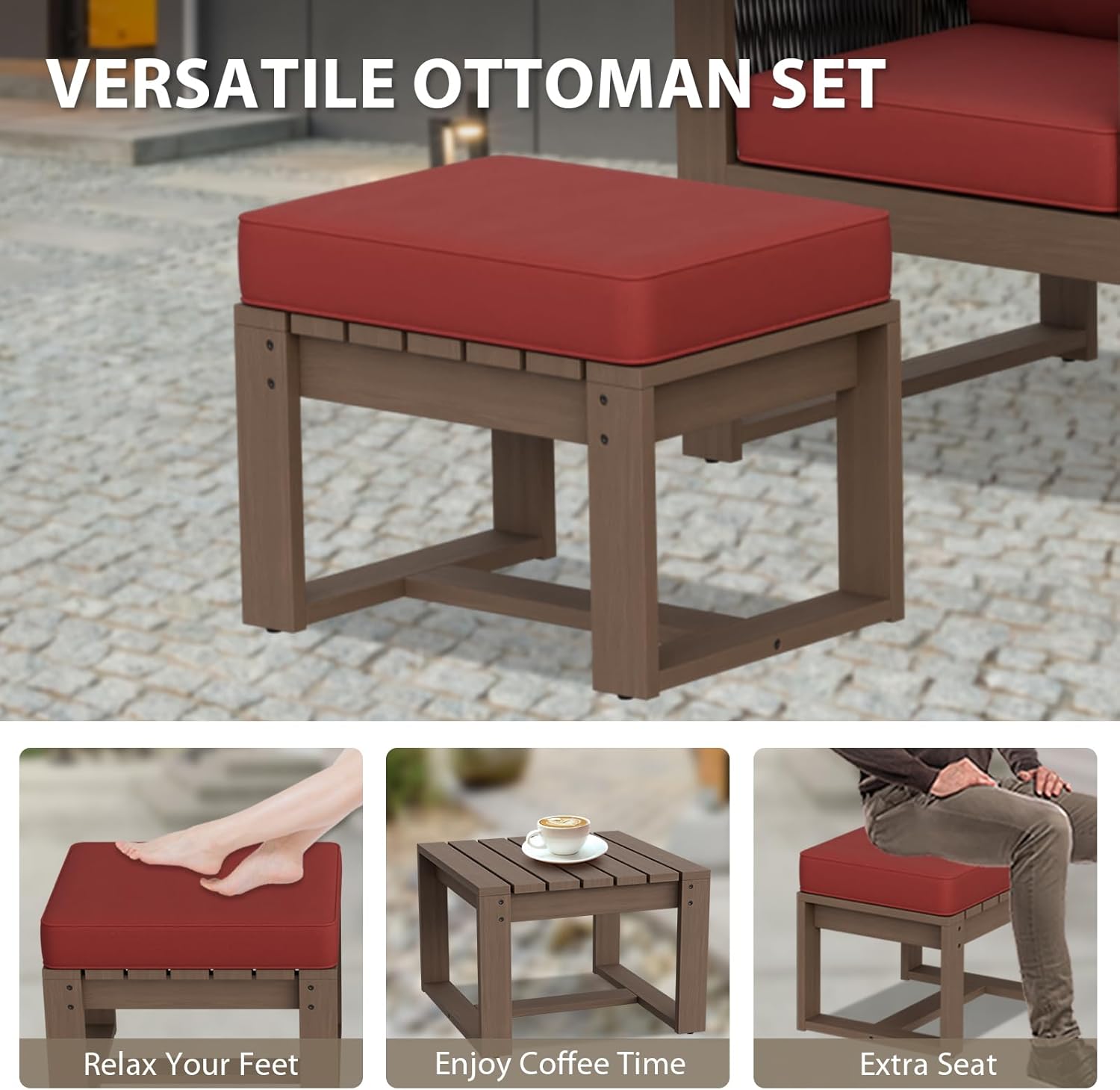 EAGLE PEAK Natural Wood Outdoor Patio Furniture, Cedar Furniture, Conversation Set, Outdoor Seating for Deck Patio Porch, Sofa 4 Chairs 2 Ottomans & Coffee Table, 8 Pieces, Brown/Red