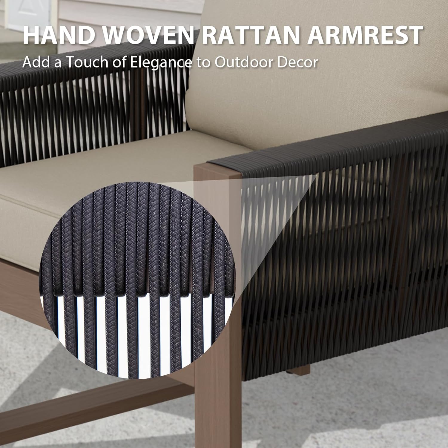 EAGLE PEAK Natural Wood Outdoor Patio Furniture, Cedar Furniture, Conversation Set, Outdoor Seating for Deck Patio Porch, Sofa 2 Chairs & Coffee Table, 4 Pieces, Brown/Beige