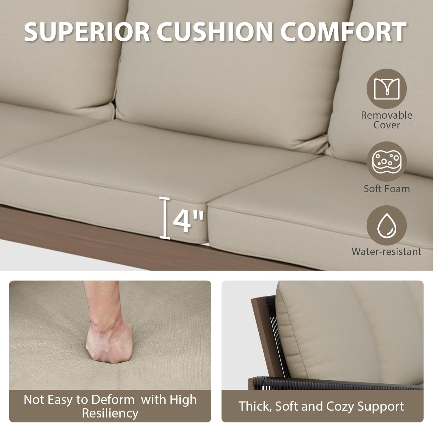 - SUPERIOR CUSHION COMFORT: Generously padded with soft foam and wrapped in premium UV resistant Olefin fabric, the cushions provide a cozy, supportive feel for hours of relaxation. The covers are equipped with a convenient zipper closure for easy removal, making cleaning and maintenance a breeze.